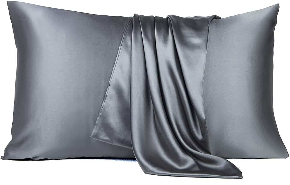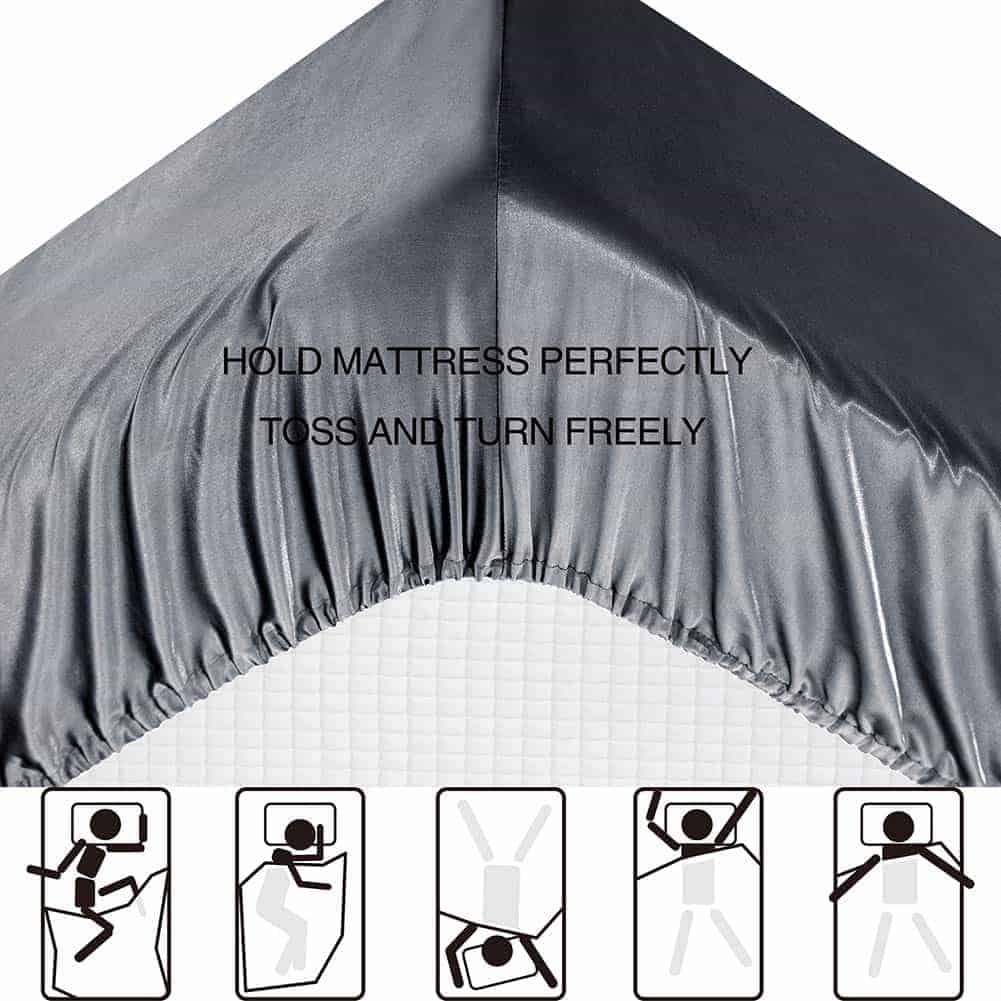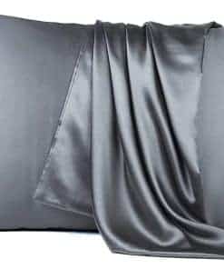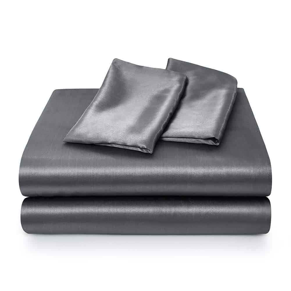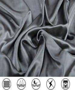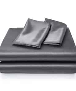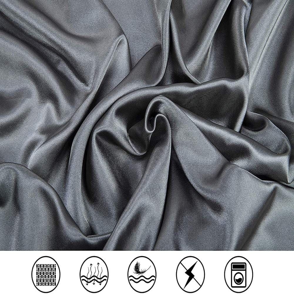 Juego de sábanas de seda satinada para cama Queen, gris, 4