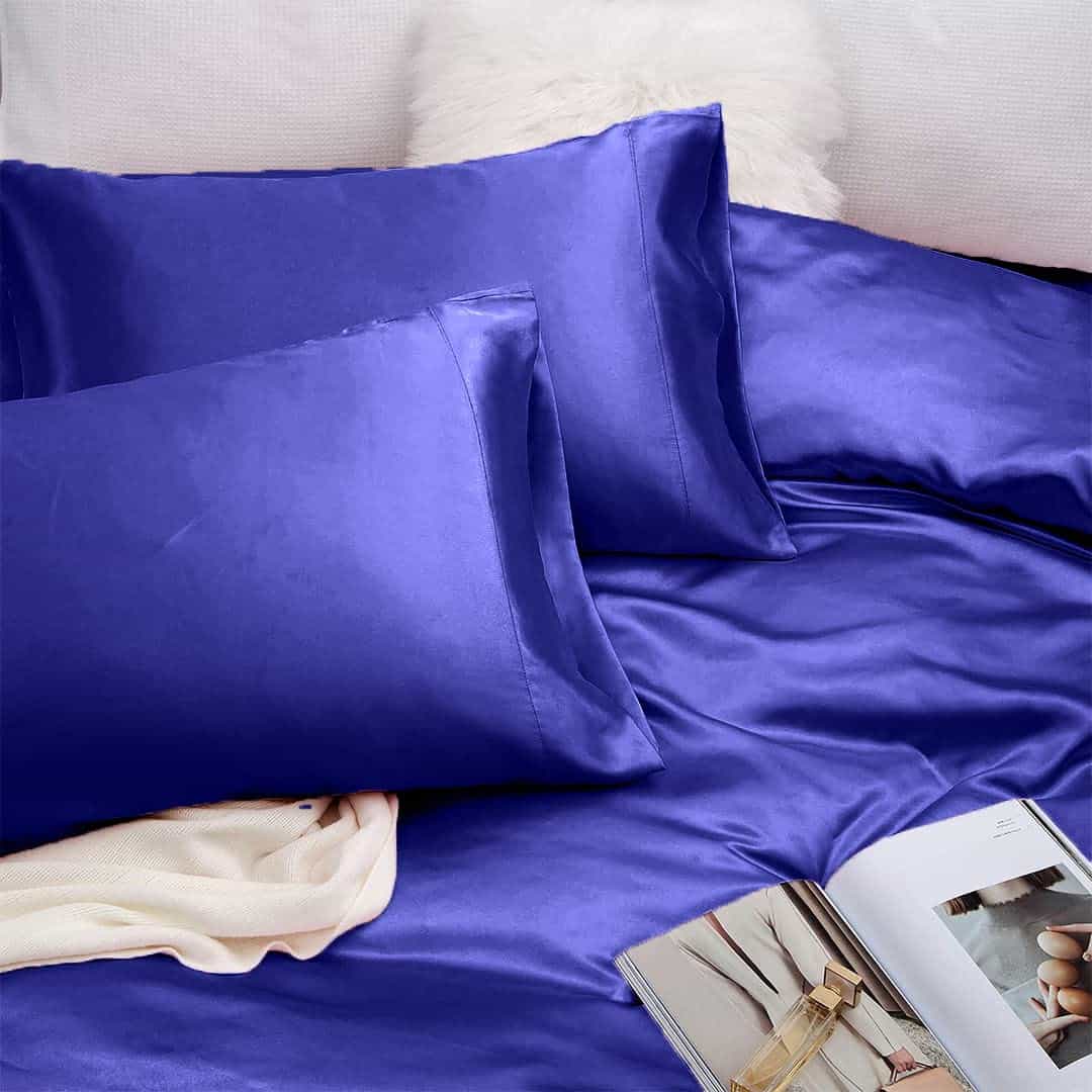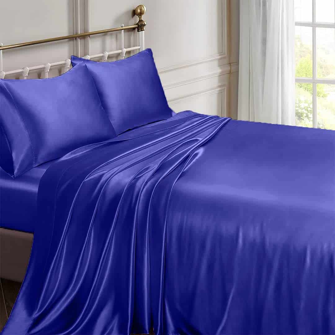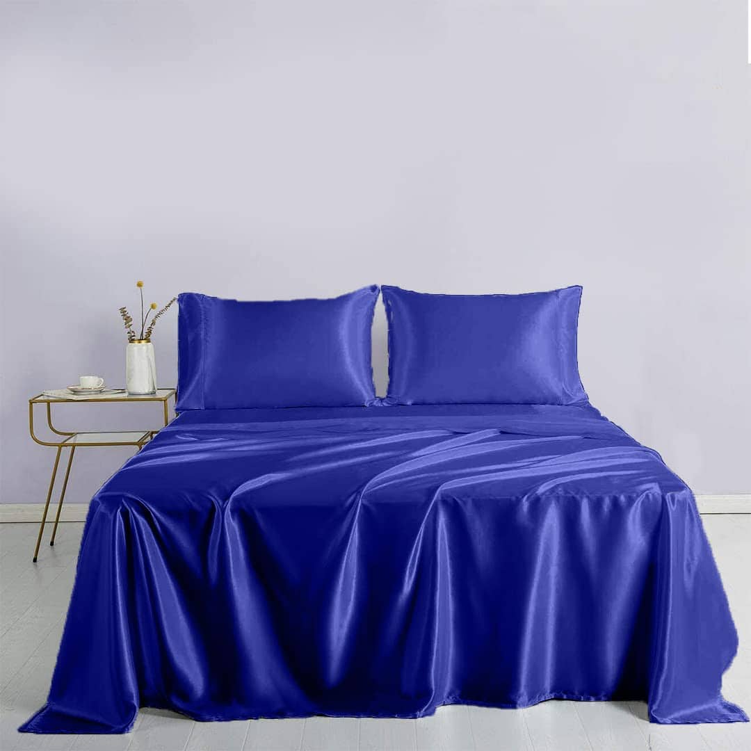 Juego de Sábanas de Seda Satinada Rico Bedding -Azul Real