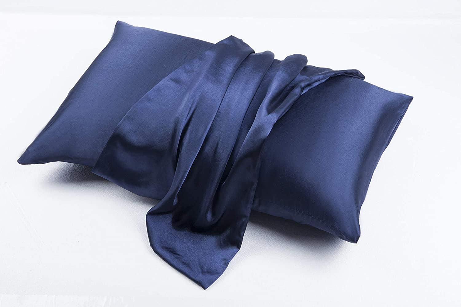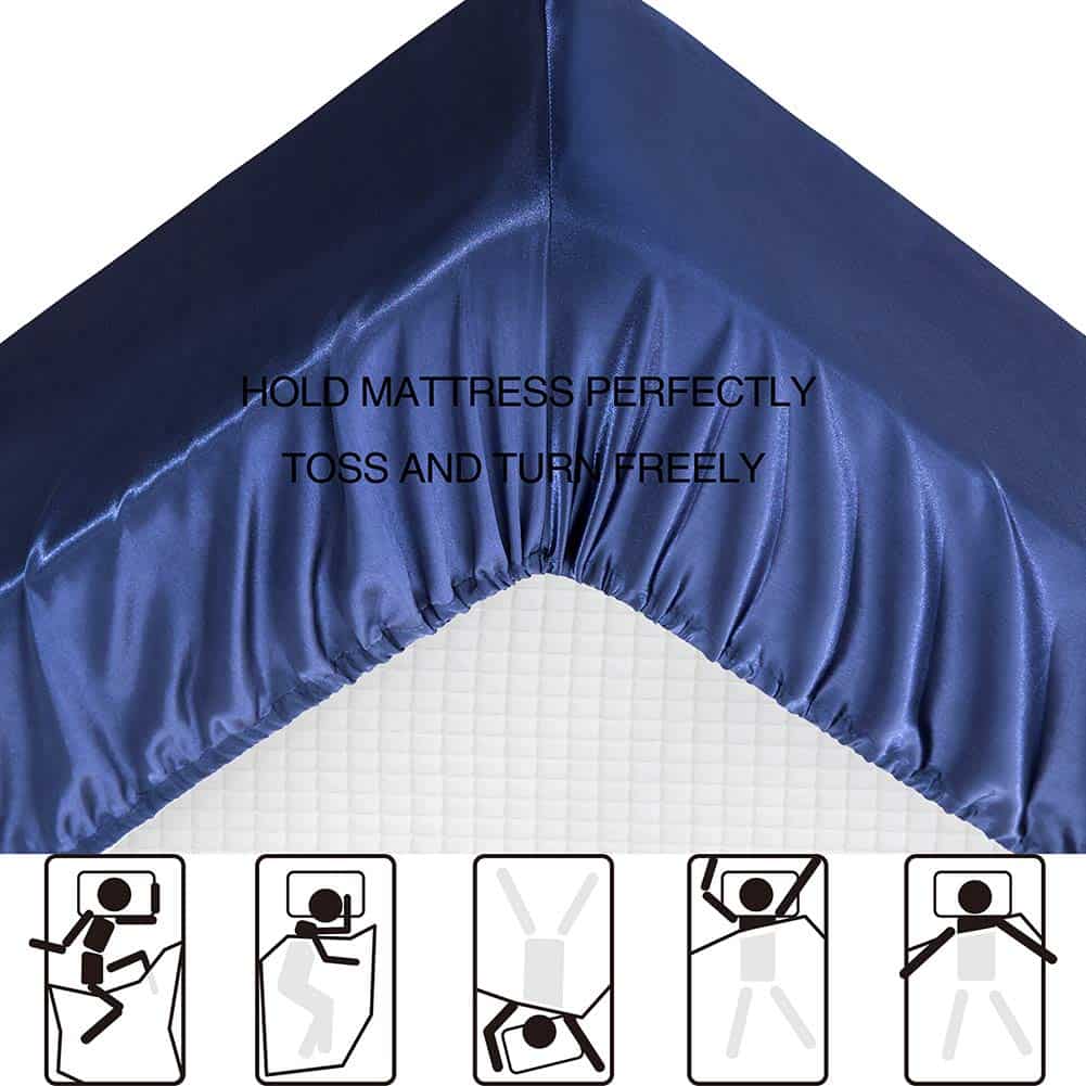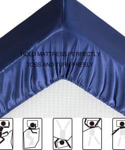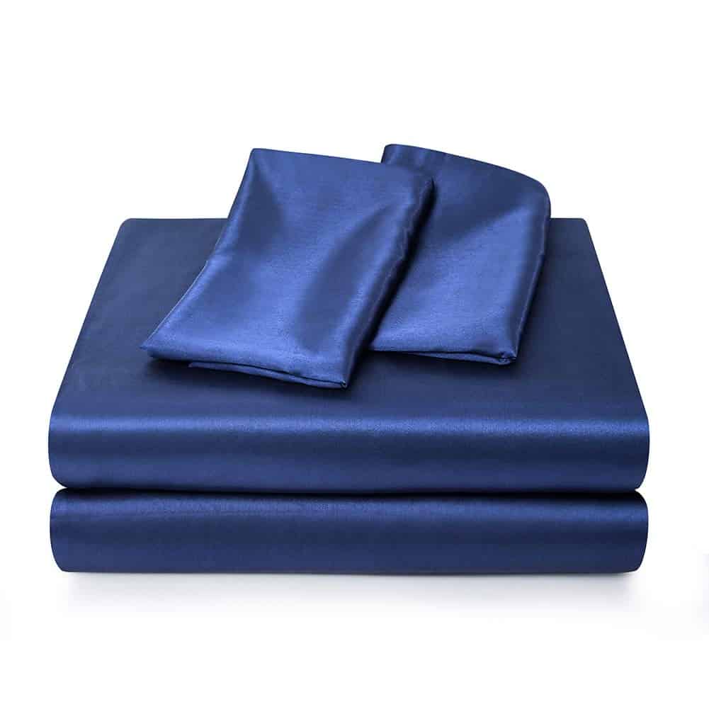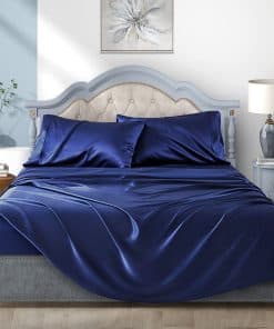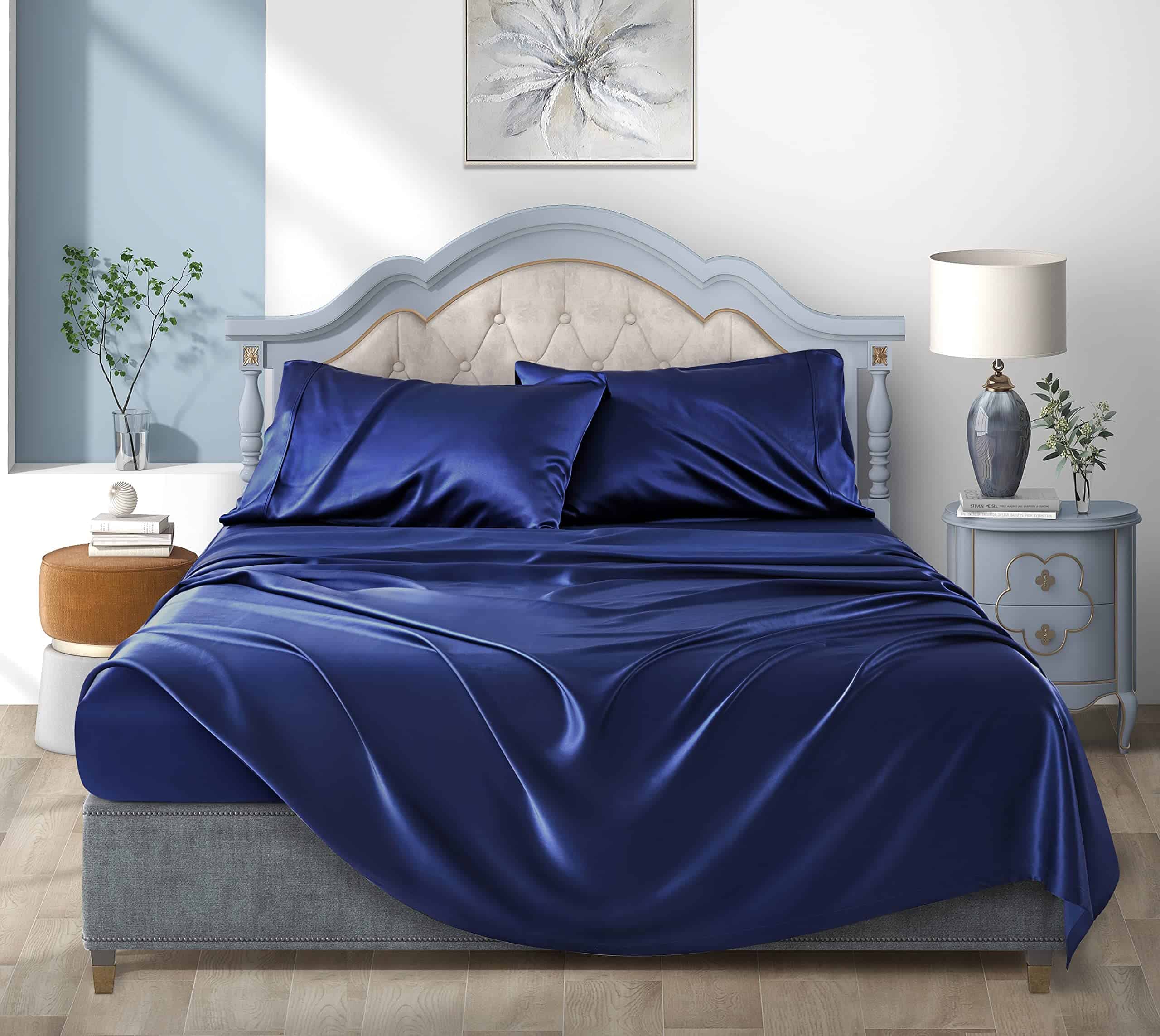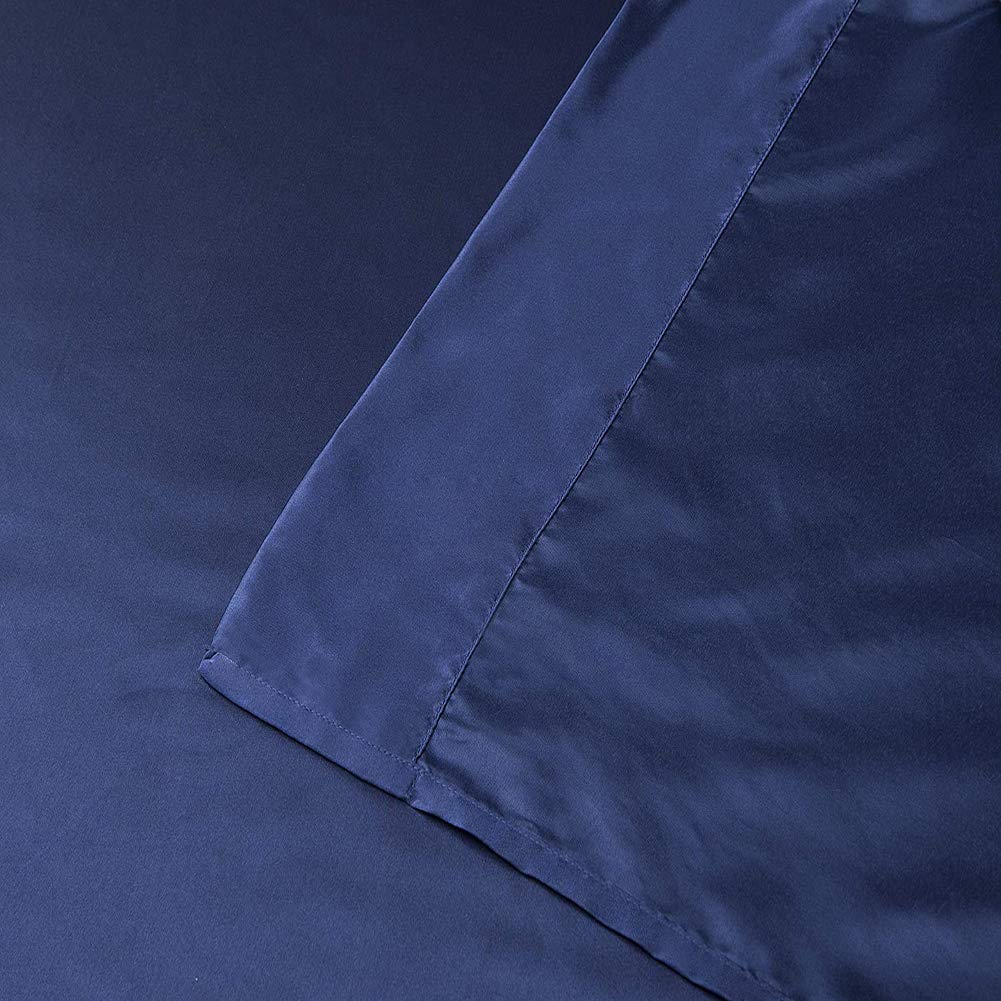 Juego de Sábanas de Seda Tamaño King, Color Azul Marino, 4