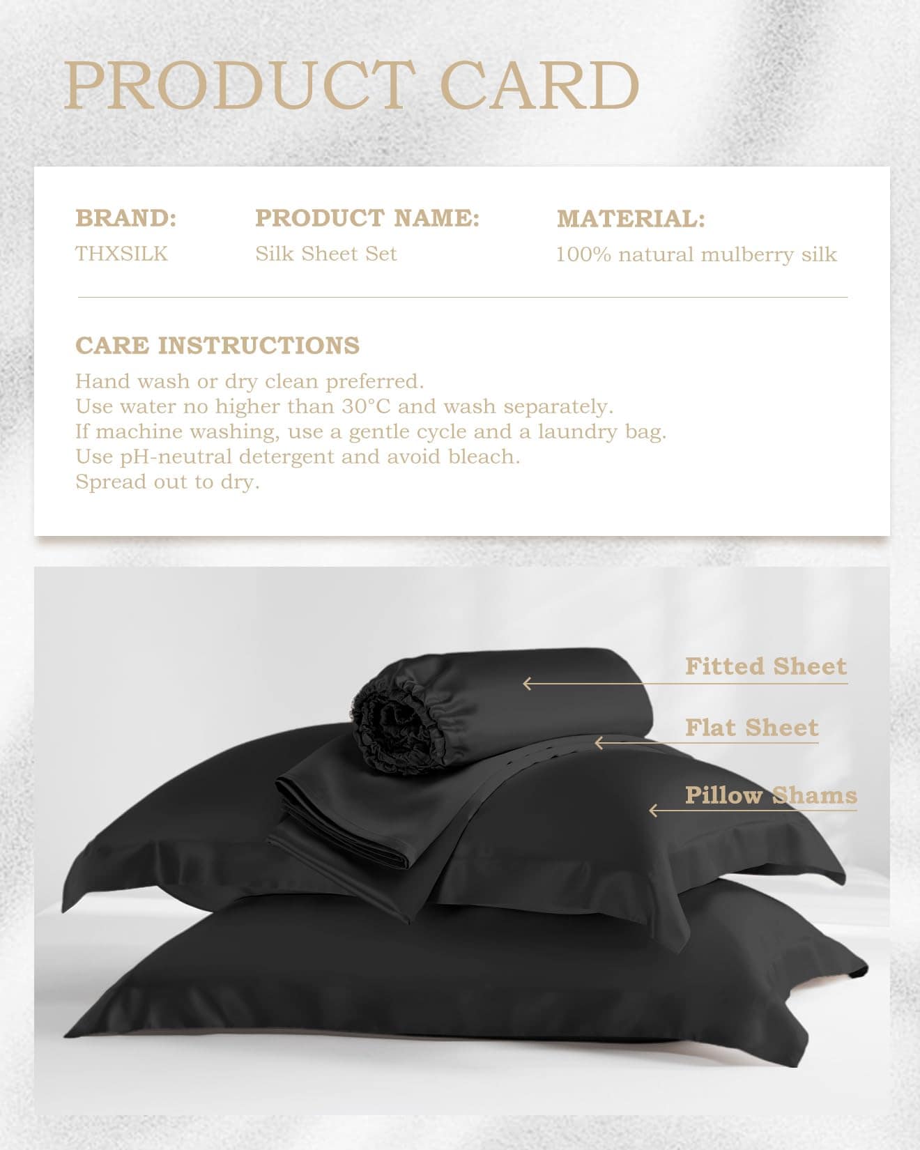 Juego de sábanas de seda THXSILK 100%, Juego de sábanas de