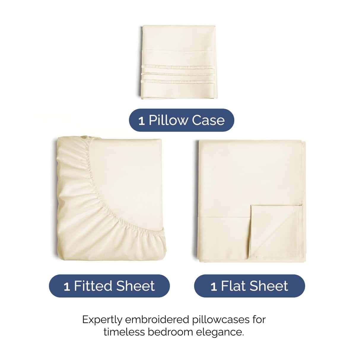 Juego de sábanas de tamaño individual de 3 -Blanco Marfil