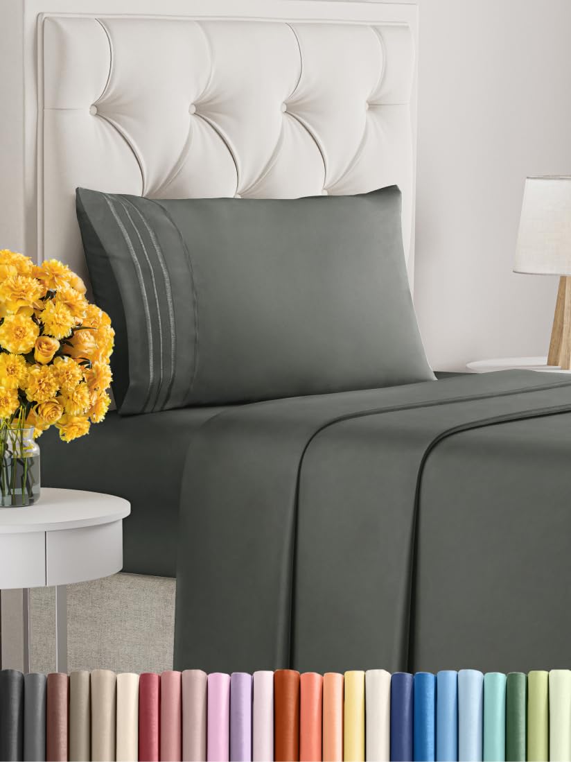 Juego de sábanas de tamaño individual de 3 -Gris pizarra osc