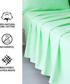 Juego de sábanas de tamaño individual de la marca Best Season en un precioso color menta. Este juego de sábanas de algodón puro viene con una sábana plana de 68 por 96 pulgadas, una sábana ajustable de 39 por 75 por 16 pulgadas, y una funda de almohada de 21 por 32 pulgadas. El material de algodón ofrece transpirabilidad y se mantiene fresco al tacto, lo que lo hace perfecto para climas cálidos o los meses de verano. Las arrugas inherentes al material de algodón demuestran su autenticidad y se suavizarán con cada lavado. Este juego de sábanas es el regalo ideal para hombres, mujeres, madres, padres, niños y estudiantes universitarios, ideal para días festivos, cumpleaños y ocasiones especiales. Añade un toque de elegancia duradera a tu habitación con este juego de sábanas de algodón suave y duradero en un hermoso color menta.