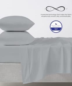 Esta juego de sábanas tamaño King en color gris claro de 1000 hilos está diseñado para brindarte la máxima comodidad y elegancia en tu dormitorio. Con su tejido de satén Infinity patentado, estas sábanas son suaves como la seda y transpirables, asegurando una noche de sueño placentera en cualquier temporada. El lujo se combina con la comodidad en este juego de sábanas con un patrón de un hilo por debajo y tres hilos por encima, junto con una construcción de 1000 hilos para mantenerte acogedor en las noches frías y fresco en las noches cálidas.