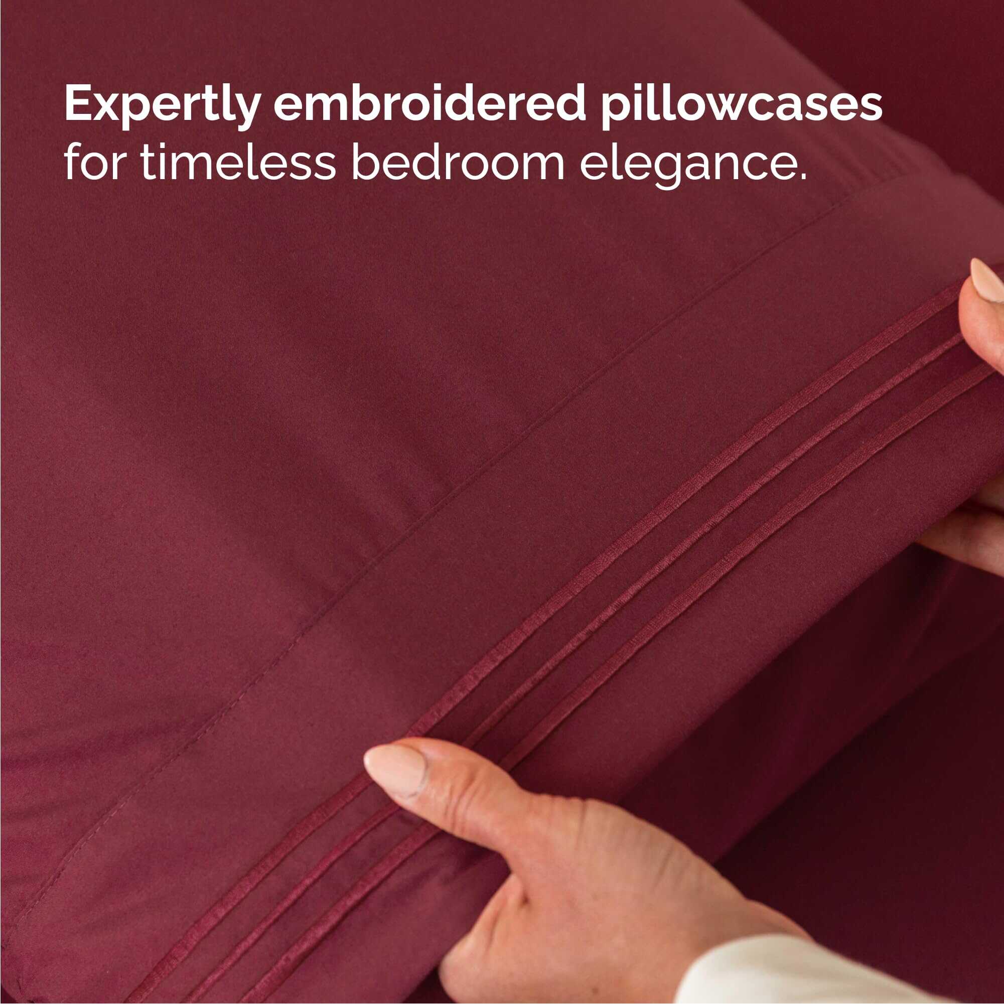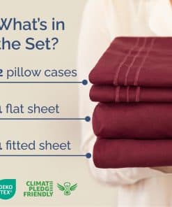 Juego de sábanas de tamaño Queen de 4 -Borgoña