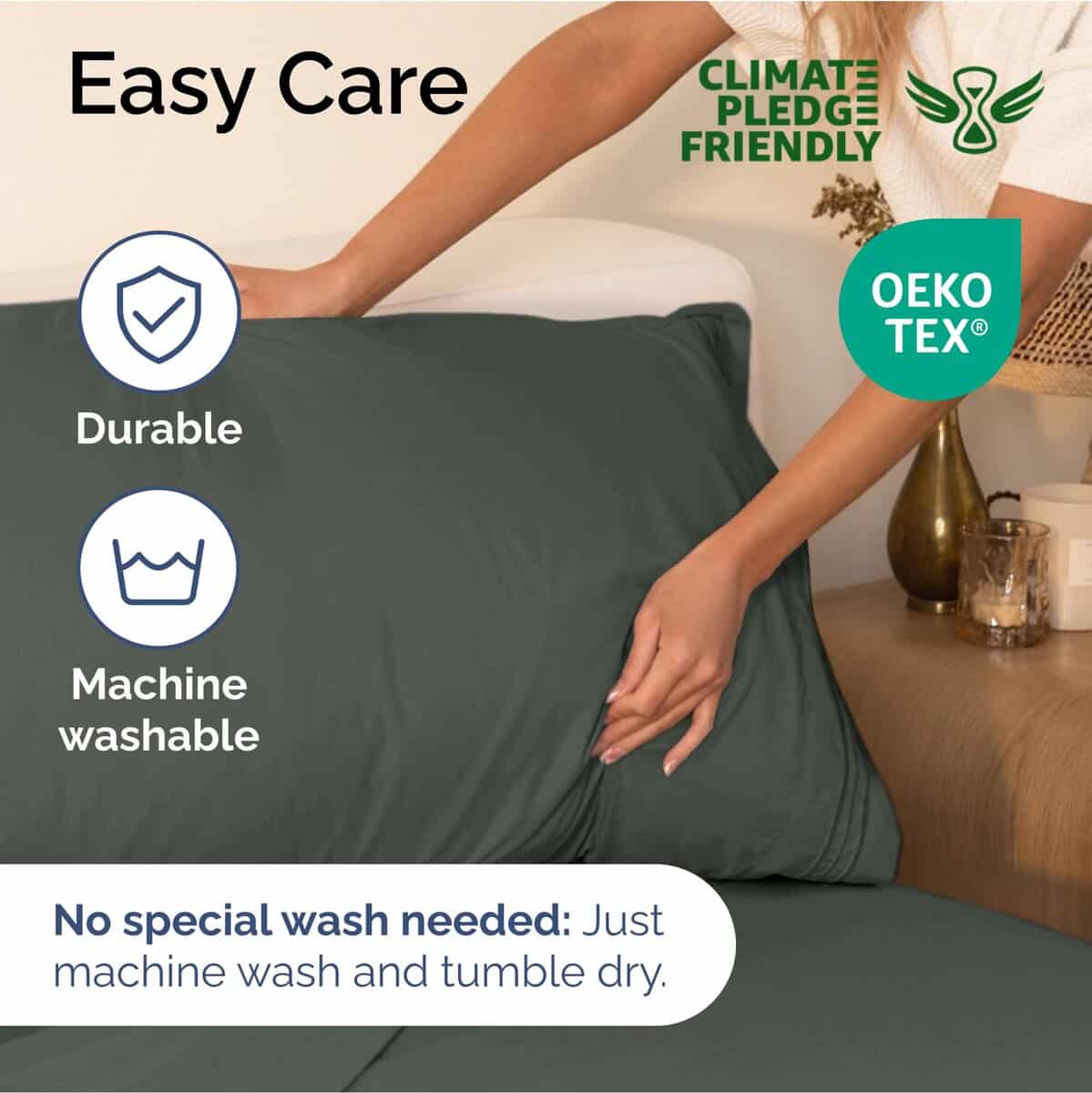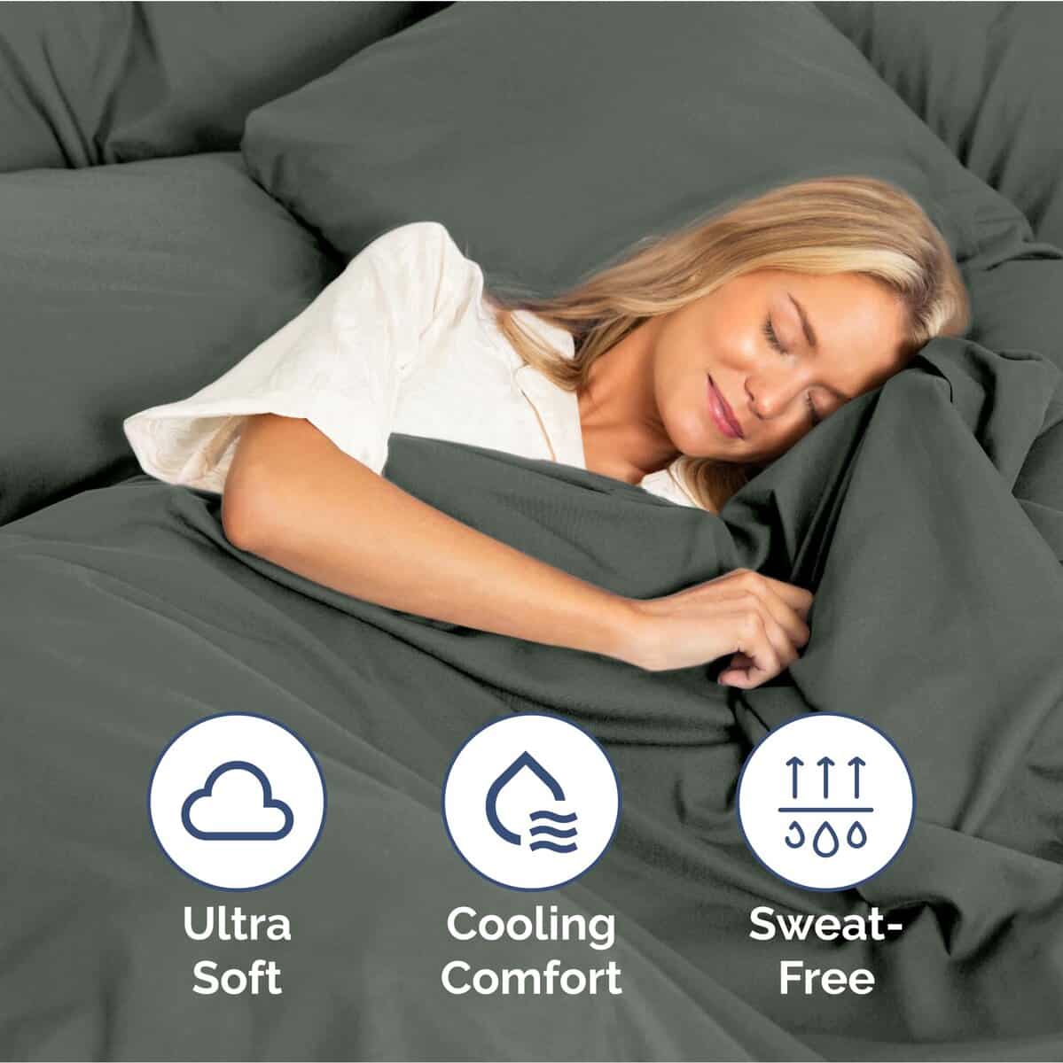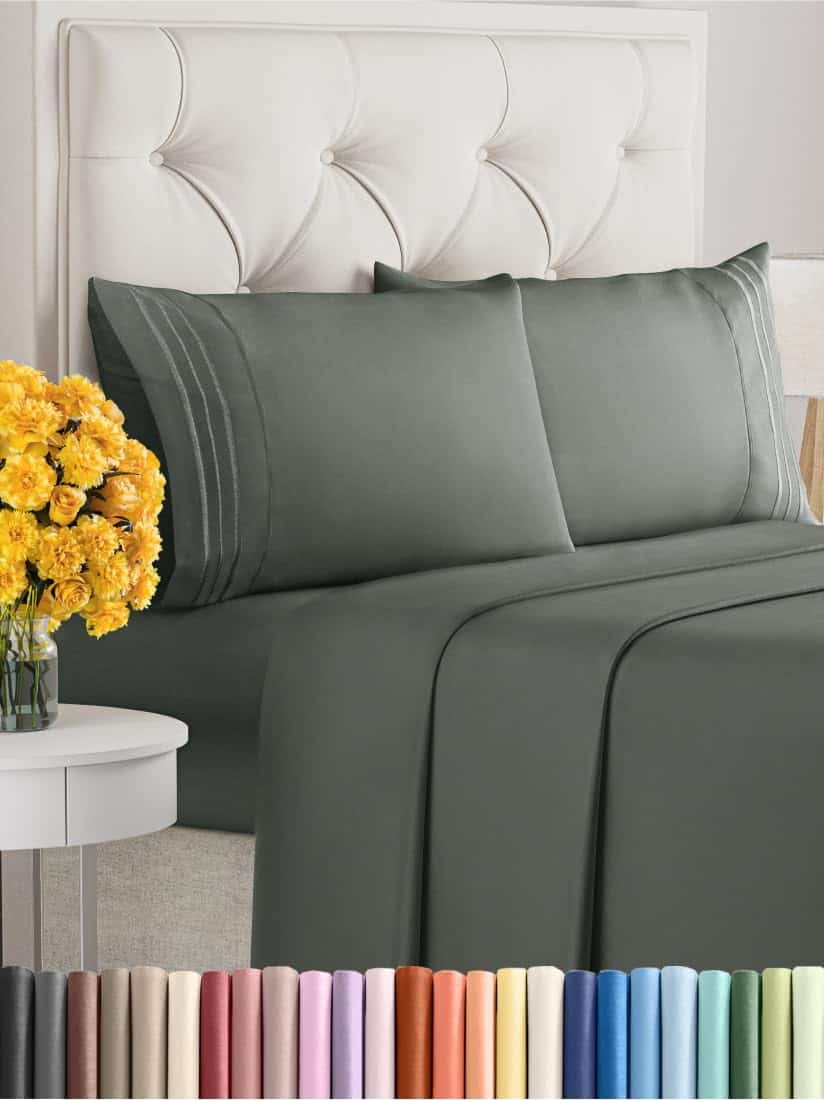 Juego de sábanas de tamaño Queen de 4 piezas, en elegante color gris metálico. Incluye 2 fundas de almohada, una sábana plana y una sábana ajustable. La sábana plana mide 102 x 90 pulgadas, la sábana ajustable mide 80 x 60 pulgadas y las fundas de almohada son de 20 x 30 pulgadas. Los bolsillos profundos y el fácil ajuste hacen que estas sábanas se adapten a colchones de hasta 16 pulgadas de profundidad. Si buscas sábanas suaves y transpirables, has encontrado las indicadas. Son super sedosas y frescas, más suaves que las sábanas de algodón egipcio. Hechas de microfibra cepillada de la más alta calidad, estas sábanas son ligeras y finas al tacto. Ideales para cualquier habitación de tu casa, ya sea el dormitorio, la habitación de invitados, el RV o la casa de vacaciones. También son una excelente idea de regalo para cualquier ocasión. No te pierdas la oportunidad de disfrutar de estas sábanas de calidad a un precio razonable. ¡Hazte con las tuyas hoy mismo!