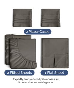 1. SET DE SÁBANAS DE 5 PIEZAS: 2 fundas de almohada, una sábana plana y 2 sábanas ajustables. Sábana plana (108″ x 102″) 2 Sábanas ajustables (39″ x 80 ) 2 Fundas de almohada (20 x 40 ).