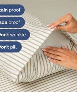 2. BOLSILLOS PROFUNDOS/ FÁCIL AJUSTE: Se ajustan a colchones de hasta aproximadamente 16 pulgadas de profundidad. Si su colchón es más pequeño que 16 pulgadas, encajará perfectamente. Muchos colchones son bastante grandes en estos días y consideramos que este es un tamaño universal bueno que se ajusta a la mayoría de los colchones.
