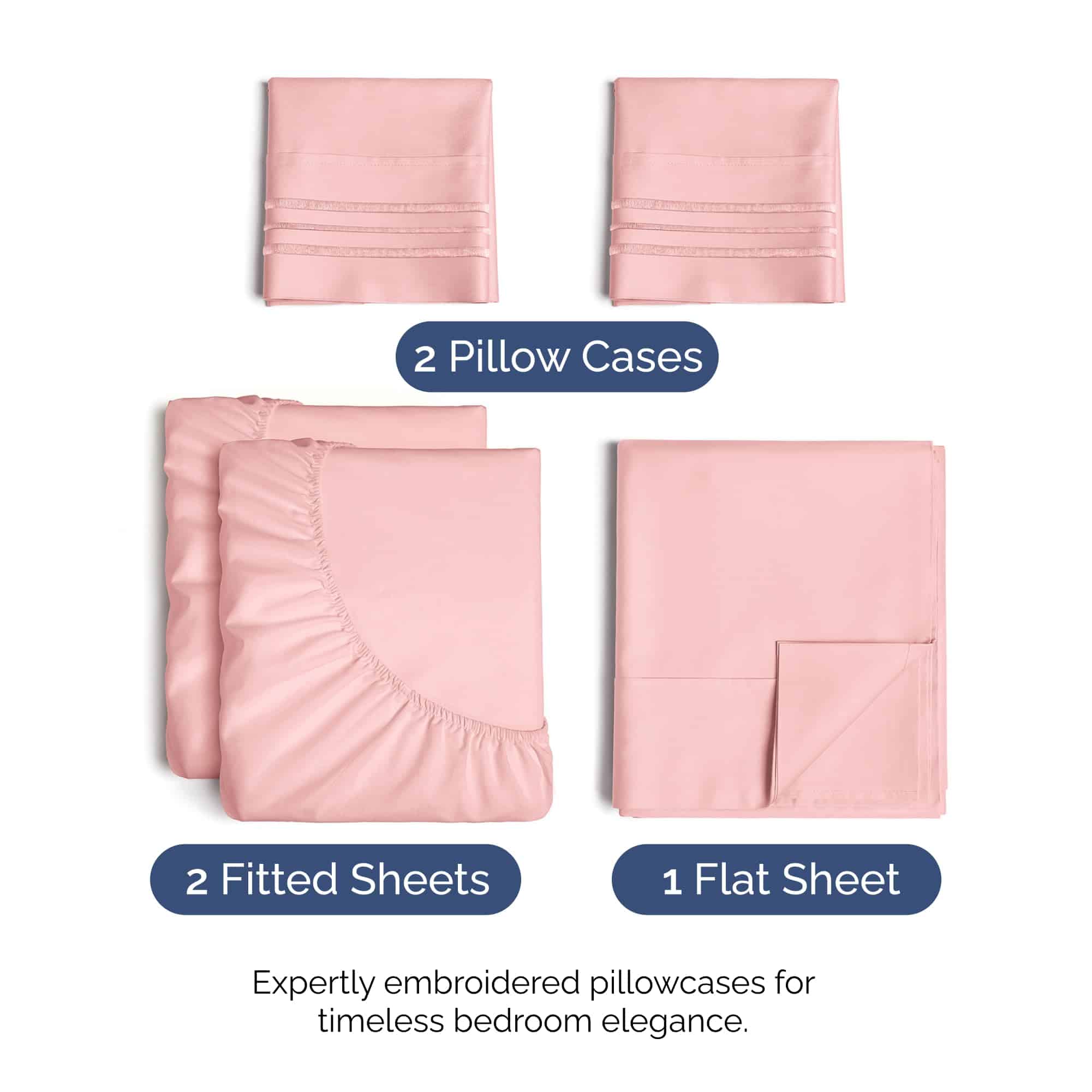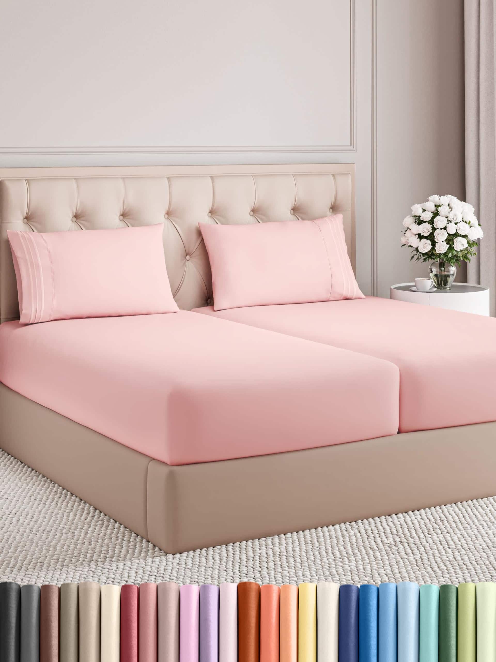 Split King Size 5 Piece Sheet Set – Comfy Breathable & Cooling Bed Sheets Set – Hotel Luxury Bedding for Women, Men, Kids & Teens – Deep Pockets, Easy-Fit, Soft and Wrinkle Free – Oeko-Tex – Baby Pink