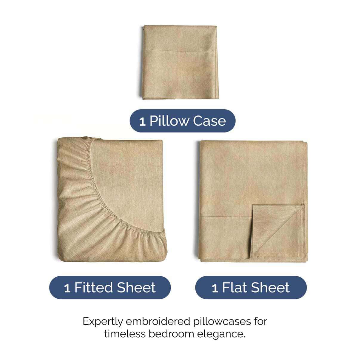 Juego de sábanas de tamaño Twin de 3 -Color: Beige jaspeado