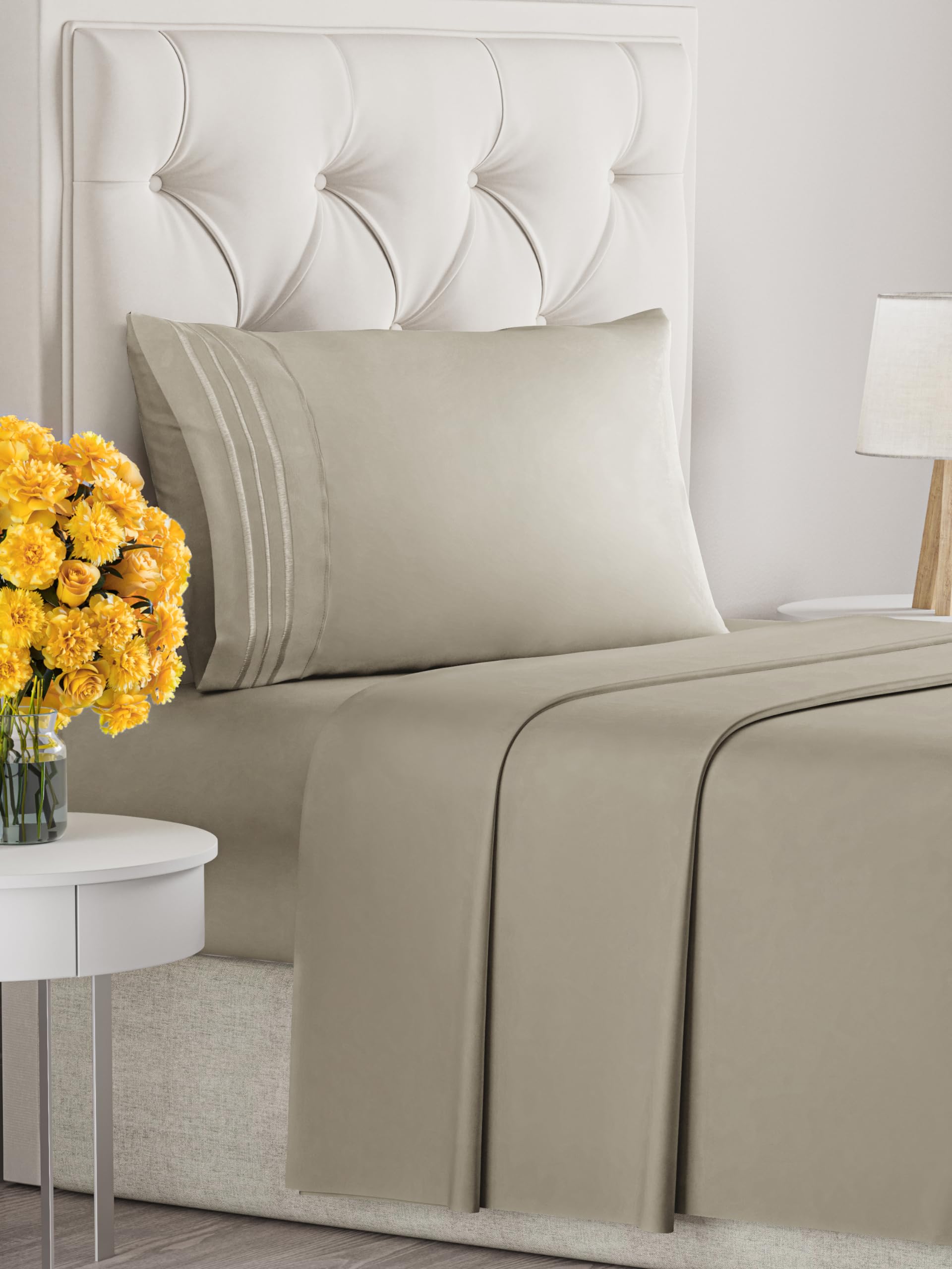 Juego de sábanas de tamaño Twin XL de 3 -Beige