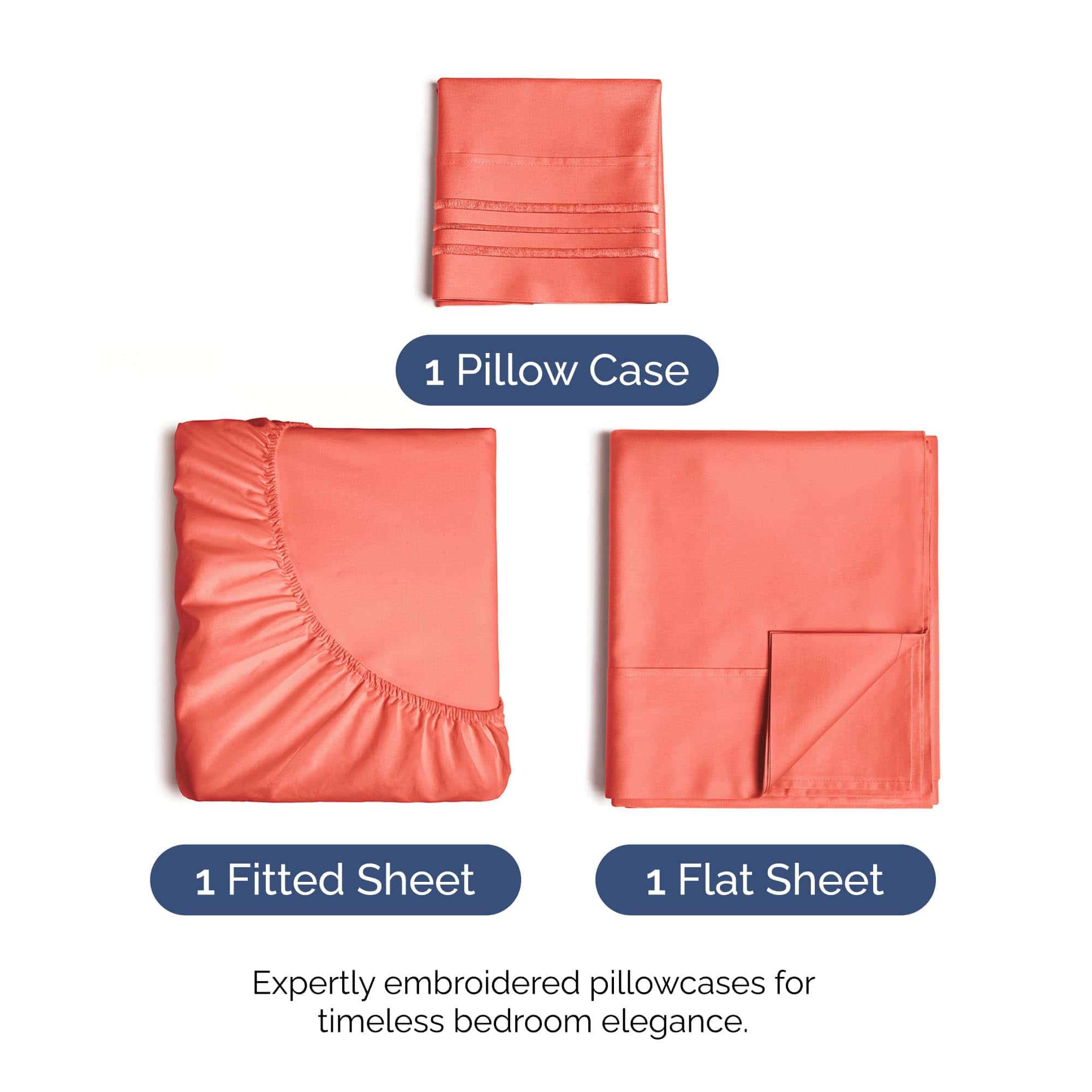 Juego de sábanas de tamaño Twin XL de 3 -Coral