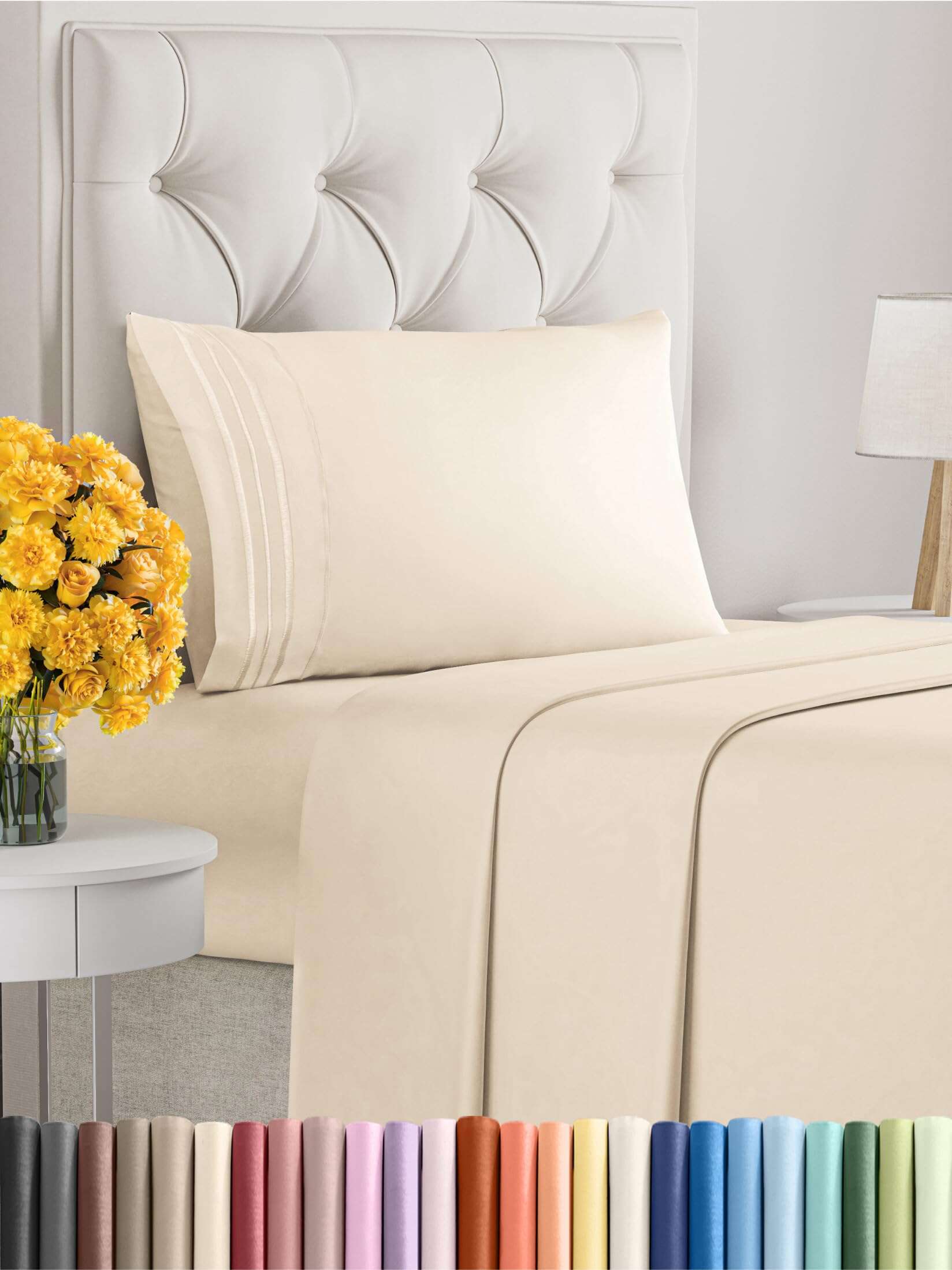Juego de sábanas de tamaño Twin XL de 3 -Crema rosa