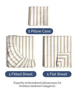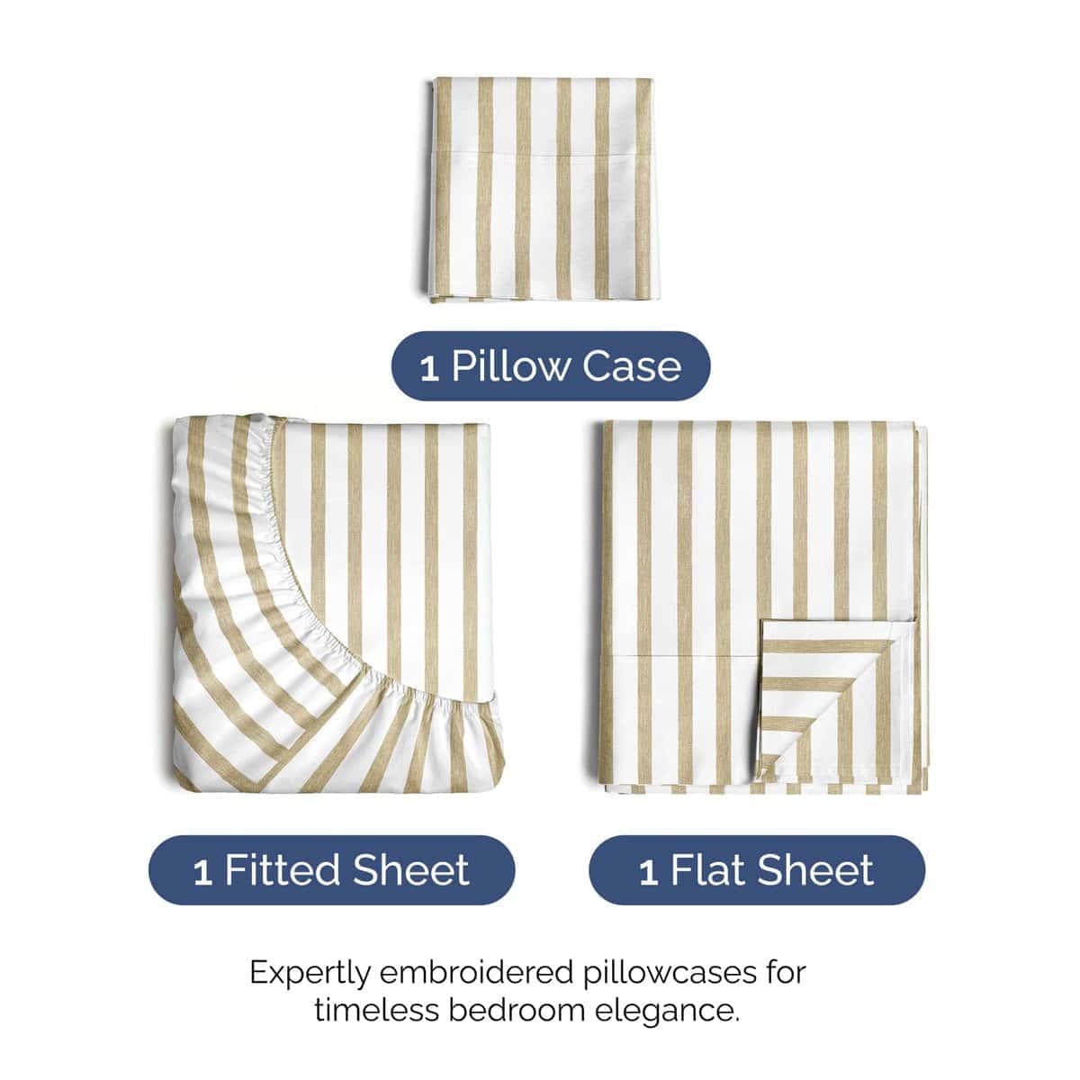 Juego de sábanas de tamaño Twin XL de 3 piezas -Rayas beige