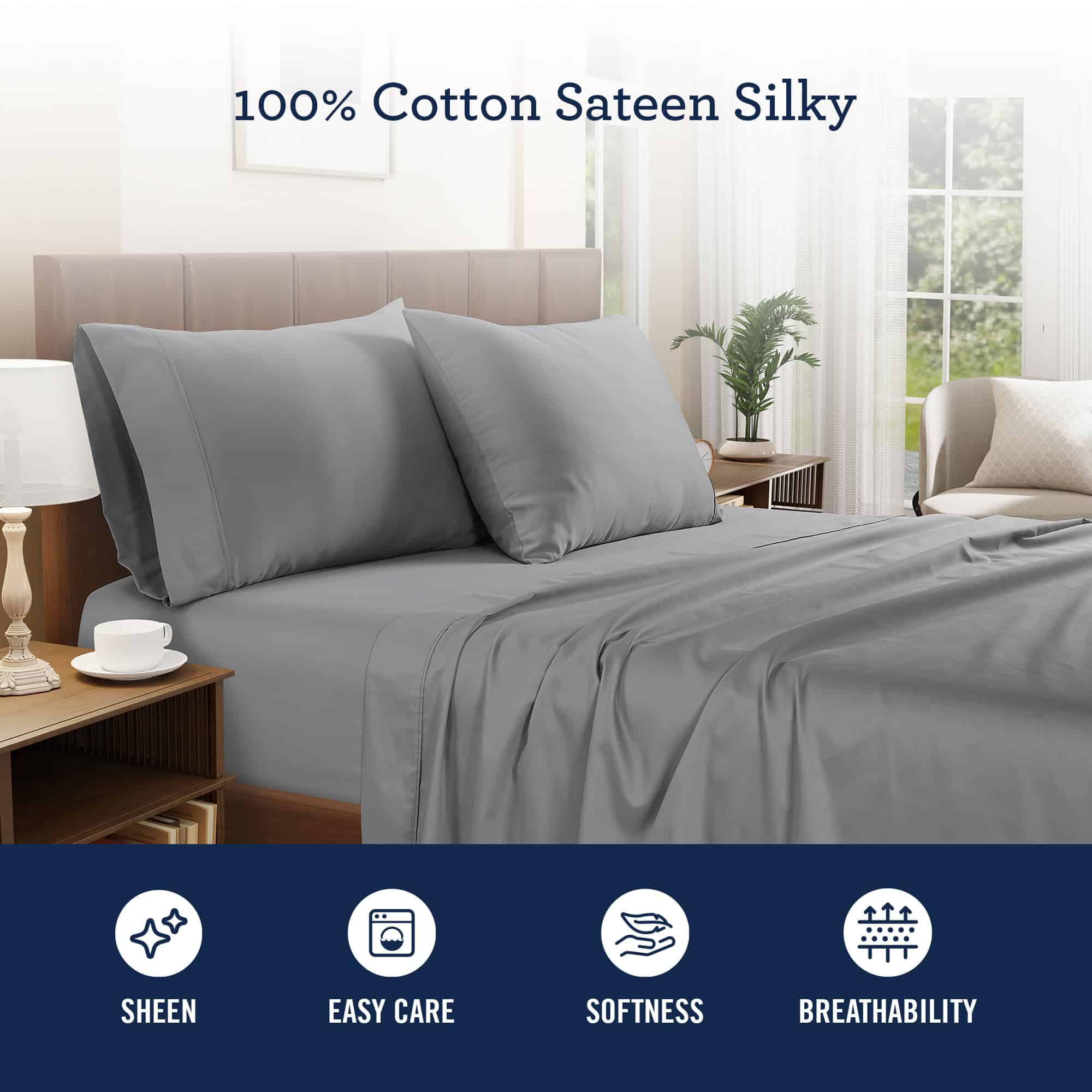 Sábanas de Algodón Sateen IZOD Confort y Estilo Intemporales para un Sueño Perfecto Una buena noche de descanso es esencial para despertar renovado, y todo comienza con las sábanas perfectas. Las Sábanas de Algodón Sateen IZOD están diseñadas para transformar tu experiencia de sueño, ofreciendo una combinación inigualable de comodidad, durabilidad y estilo, estas sábanas proporcionan una sensación suave como la mantequilla con un brillo sutil, asegurando un ambiente de sueño lujoso y transpirable todas las noches. La sábana ajustable completamente elástica garantiza un ajuste seguro, evitando deslizamientos y manteniendo tu ropa de cama en su lugar. Disponibles en tamaños Twin, Twin XL, Full, Queen y King, estas sábanas atienden a todas las dimensiones de colchones. Elige entre una sofisticada selección de Gris Rayado, Beige Rayado, Mosaico Verde, Mosaico Rosa, Guingán Azul, Guingán Rojo, Blanco, Taupé, Salvia y Gris para combinar con cualquier decoración de dormitorio, desde clásica hasta contemporánea. Grupo Auténtico Sábanas de Algodón IZOD Un Legado de Confort y Estilo Con una rica herencia de ofrecer estilo americano clásico y artesanía de calidad, las Sábanas de Algodón Auténticas del Grupo IZOD redefinen la elegancia cotidiana. Inspiradas en la icónica marca IZOD, estas sábanas combinan diseños atemporales con funcionalidad moderna. Diseñadas para quienes aprecian tanto la comodidad como el estilo, las sábanas de IZOD están construidas para mantener su suavidad, colores vibrantes y sensación nítida lavado tras lavado. Lavables a máquina para un cuidado sin esfuerzo, estas sábanas son perfectas para el uso diario, ofreciendo durabilidad sin comprometer el lujo. Ya sea que estés mejorando tu dormitorio o buscando un regalo atento, el Juego de Sábanas de Algodón Sateen IZOD proporciona una experiencia de sueño acogedora, elegante y de alta calidad. Actualiza tu ropa de cama con la firma de IZOD: una mezcla de herencia, lujo e innovación donde la calidad se une al confort para una noche de sueño tranquila, todas las noches.