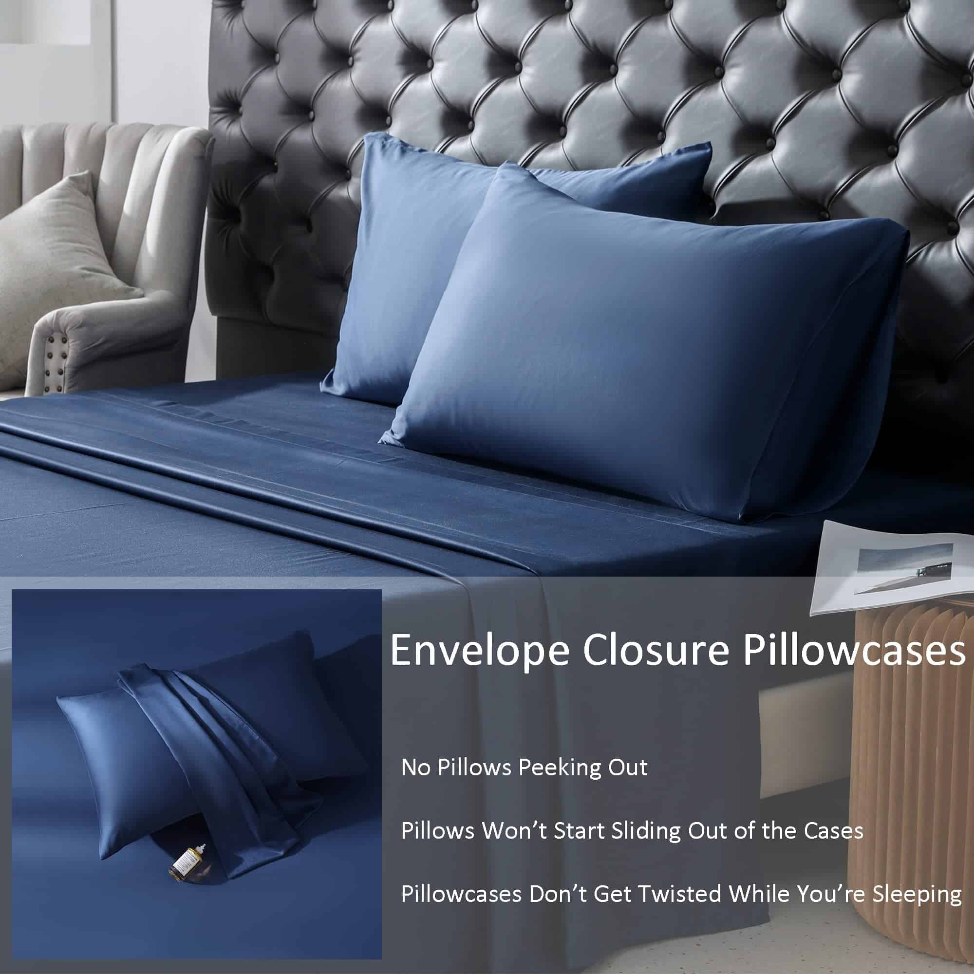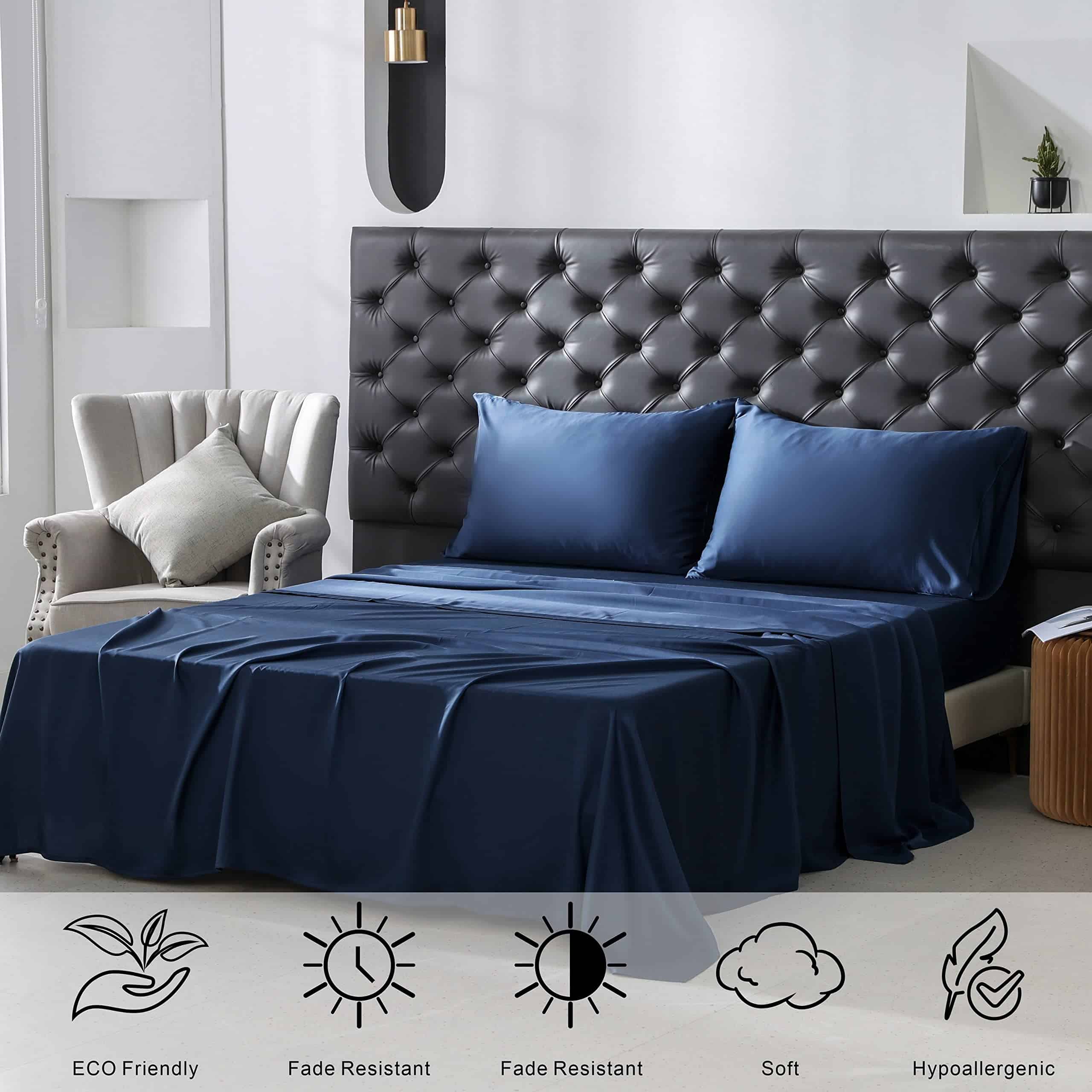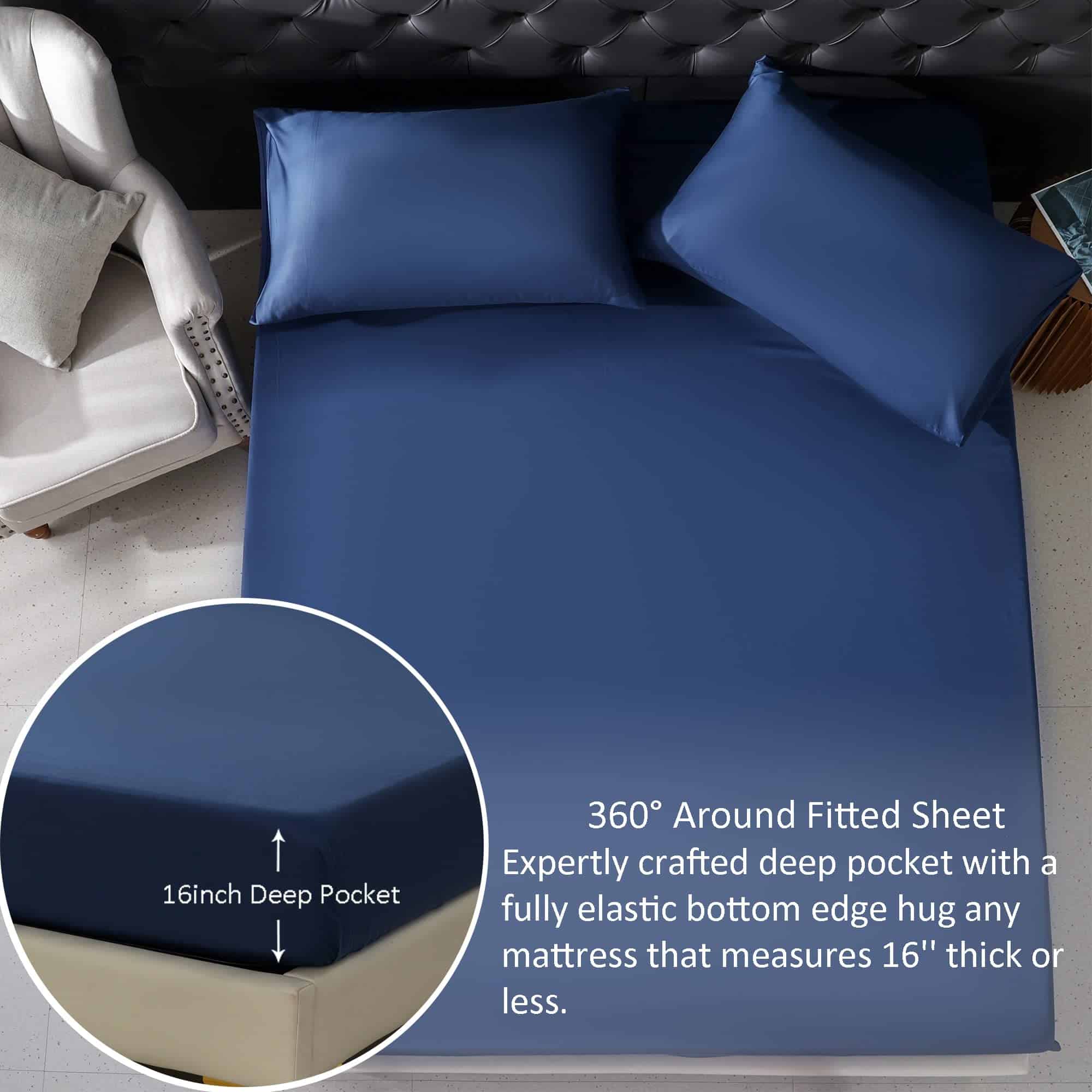 2. Juego de queen: Sábanas de eucalipto 4PCS incluyen: 1 sábana plana (90″x 102″), 1 sábana ajustable (60″x 80″+16″), 2 fundas de almohada (30″x 20″) con diseño de sobre que facilita poner y sacar la almohada. La sábana ajustable está diseñada para adaptarse a casi todos los colchones con una profundidad que no exceda los 16 pulgadas.