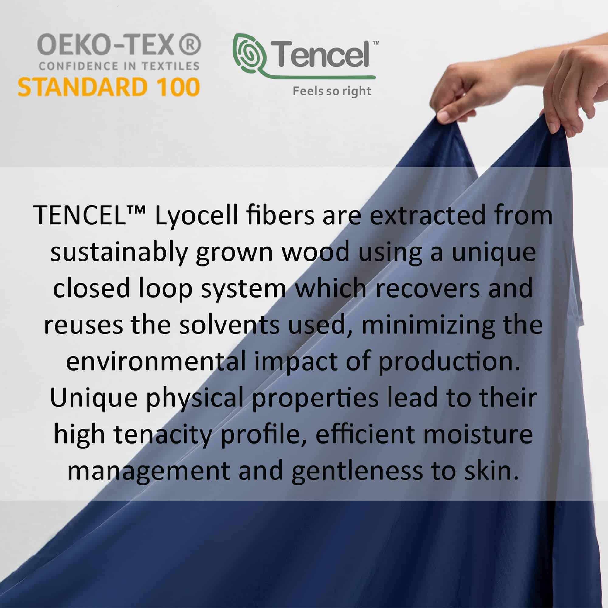 1. Material de Tencel: 100% Lyocell de eucalipto de Austria, la tela está certificada según el estándar Oeko-Tex 100. El Lyocell es una fibra de madera con una superficie de fibra suave y una excelente función de absorción de humedad, que puede promover la función de regulación natural de la temperatura corporal, haciendo que todo el cuerpo se sienta agradable y duerma cómodamente. Sábanas frescas para personas calurosas.