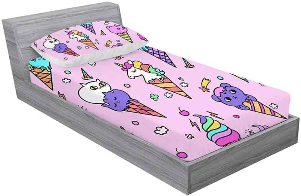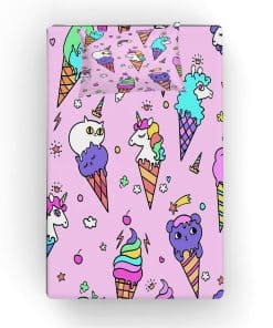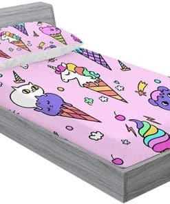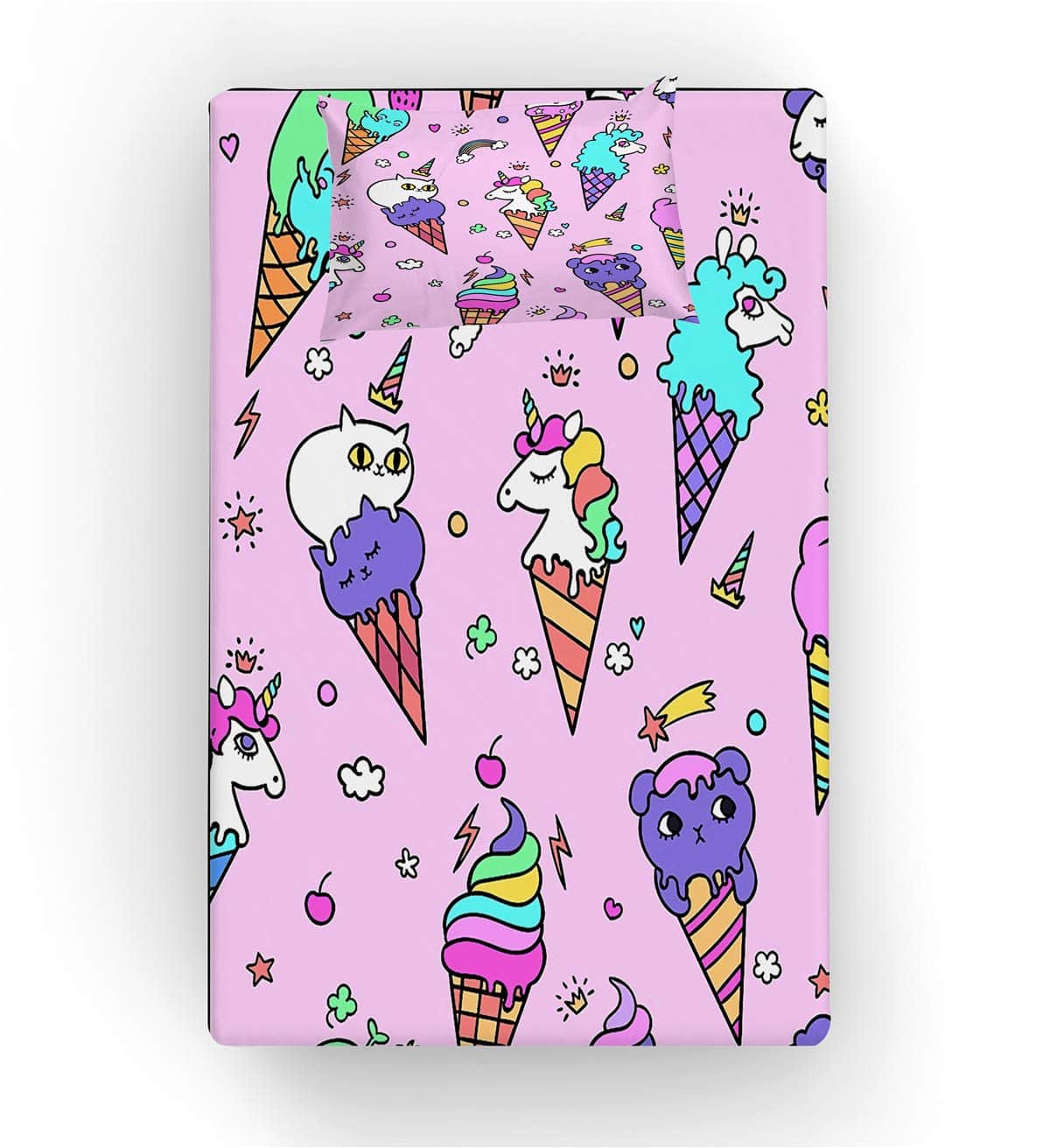 Juego de Sábanas de Unicornio de Helado Impreso en 3D y Funda de Almohada, Conjunto de Ropa de Cama Decorativa con Estilo para Niñas Adolescentes.