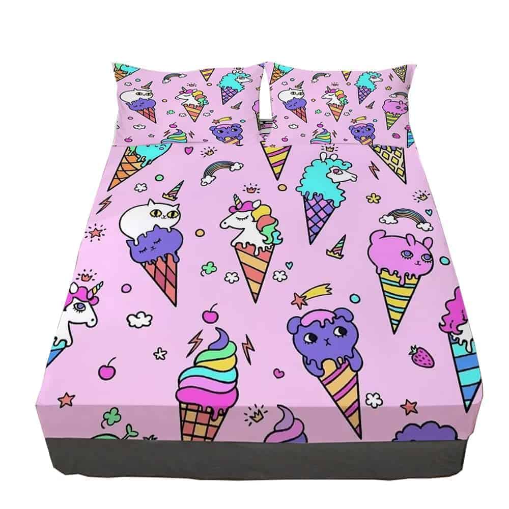 Juego de Sábanas y Fundas de Almohada con Estampado en 3D de Helado, Decoración de Dormitorio Estilosa y Divertida para Niñas Adolescentes.