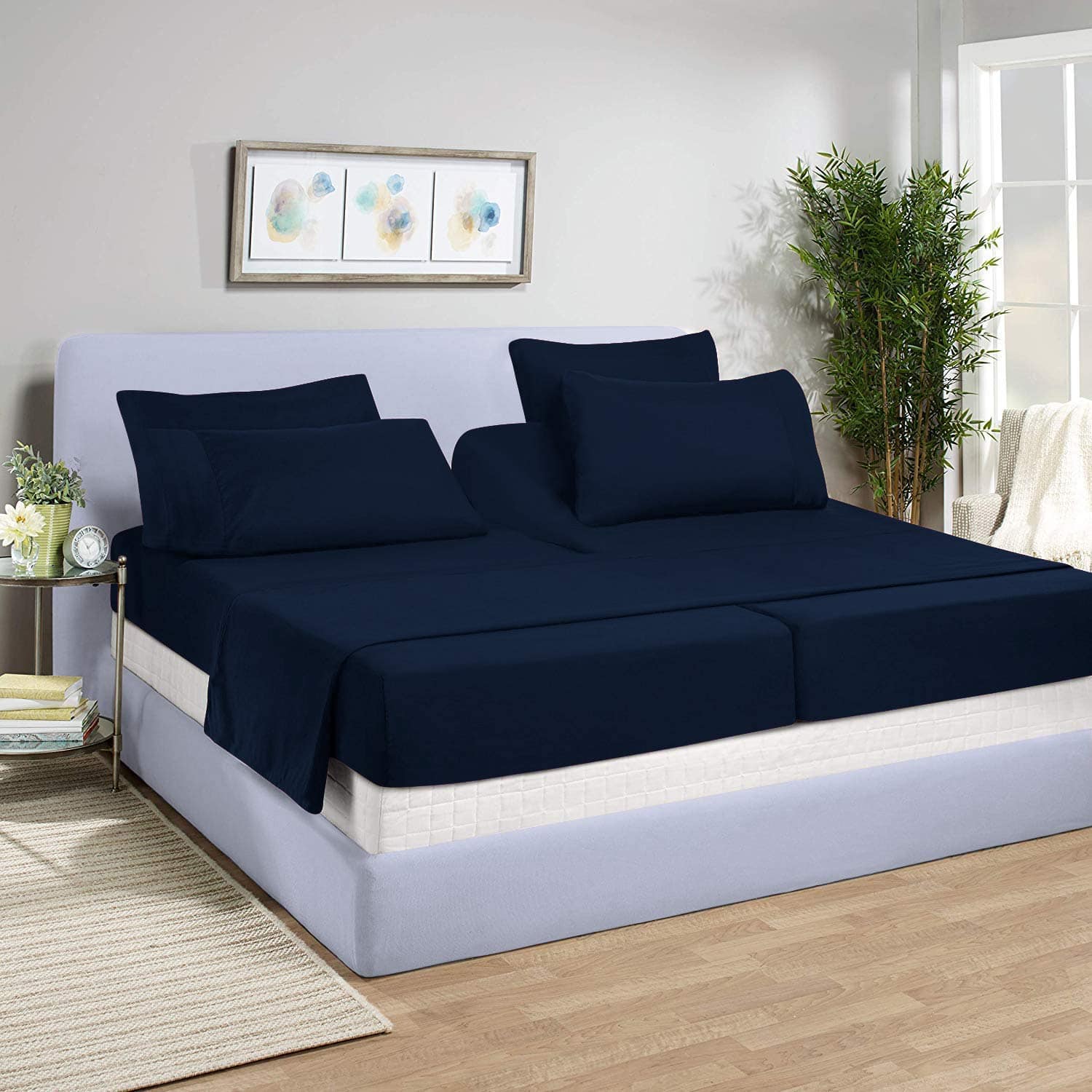Juego de sábanas divididas (5 piezas) para camas ajustables Split California King 100% algodón egipcio 800 hilos Juego de sábanas Split California King, 21″ Bolsillo profundo Sábanas para cama ajustable, Azul Marino Sólido