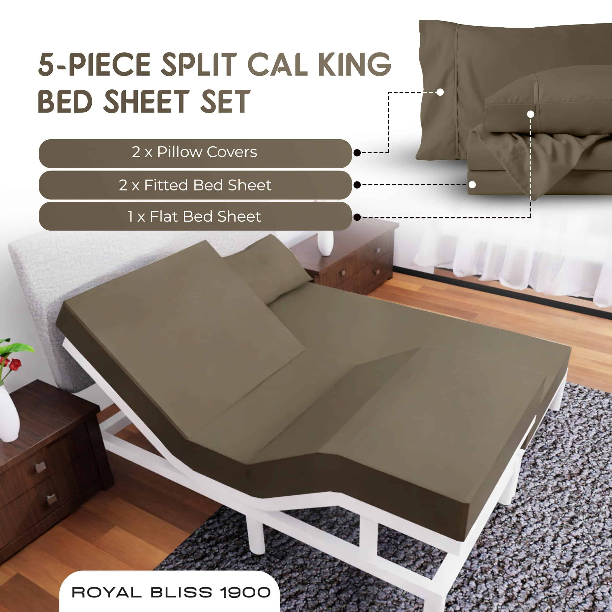 Juego de Sábanas Divididas California King 1900 Royal Bliss