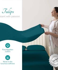 ¿QUÉ HAY EN EL PAQUETE 1 Sábana Plana (108 W x 102 L) 1 Sábana Ajustable (72 W x 84 L) + 16 bolsillo profundo. 2 Fundas de Almohada King (21 W x 41 L). DETALLES CLAVE: 100% Algodón Egipcio de Fibra Extra Larga para mayor suavidad y comodidad | Tratamiento de mercerización para mejorar el brillo, la profundidad del color y la resistencia de la tela. Acabado con un tejido de satén brillante para una sensación suave como la mantequilla | Certificado como STANDARD 100 BY OEKO-TEX Detalle de 4 pulgadas en el dobladillo de la sábana plana y las fundas de almohada y bolsillos profundos de 16 en las sábanas ajustables EL JUEGO DE SÁBANAS DE ALTA CALIDAD Y SÚPER SUAVE 100% ALGODÓN EGIPCIO: Proveemos el mejor algodón egipcio 100% y hilamos meticulosamente cada hilo para una textura refinada y más suave. El tejido de satén otorga suavidad que se siente excepcional en la piel para un sueño glorioso. Luego, pasamos al proceso de mercerización para aumentar el brillo de la tela y producir colores más brillantes y más profundos que los colores de otros sets de sábanas. ATENCIÓN DETALLADA A LOS DETALLES: Nuestra sábana tamaño California King pasa por las manos de artesanos hábiles para un detallado minucioso un precioso dobladillo de 4 pulgadas en la sábana plana/superior y bolsillos extra profundos en las sábanas ajustables para un colchón ajustable de 8 a 18 pulgadas. El pespunte con remallado en las costuras evita que la tela se abulte y se deshilache. Las etiquetas inteligentes permiten a cualquiera hacer fácilmente la cama, con un lado corto y largo etiquetado en la sábana. NOS PREOCUPAMOS POR TI: Provenientes de procesos puros y orgánicos, nuestras sábanas de algodón egipcio 100% tamaño California King son sostenibles. Nuestras sábanas frescas tamaño California King están certificadas como STANDARD 100 por OEKO-TEX para garantizar que ninguna sustancia química dañina o tóxica llegue a tus sábanas de algodón. INSTRUCCIONES DE CUIDADO: Lavable a máquina. Secar en modo bajo o colgar afuera estas sábanas de algodón para que se sequen. Doblar suavemente nuestra sábana tamaño California King después de sacarla de la secadora para evitar arrugas.