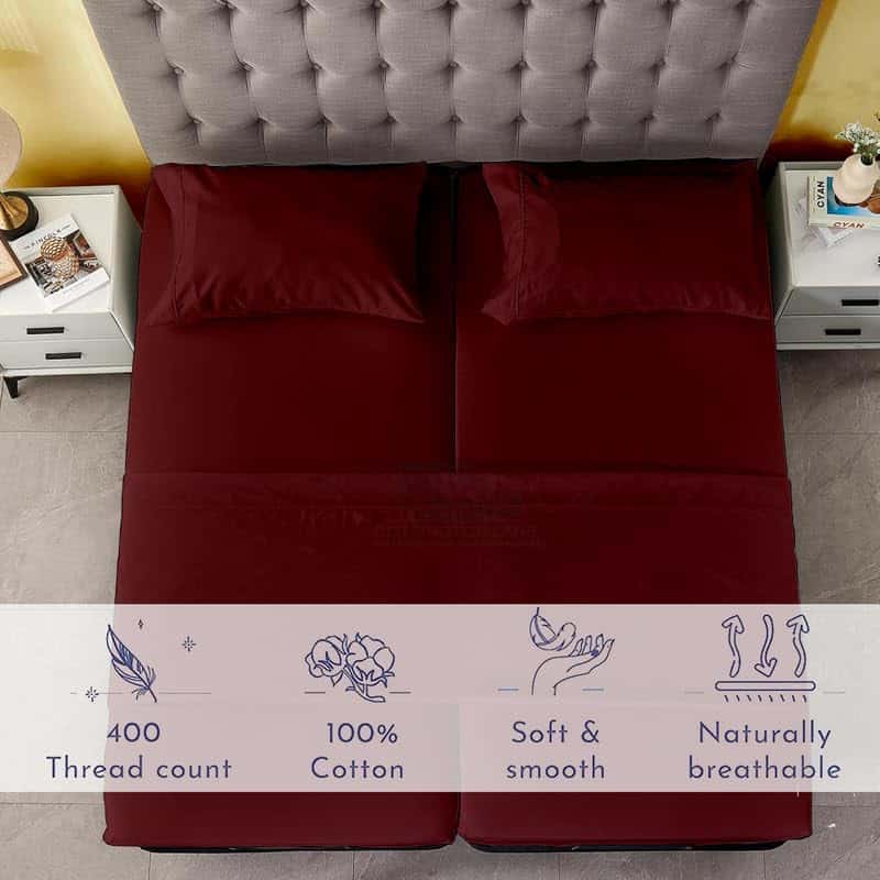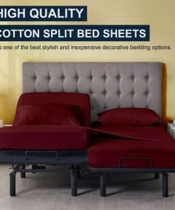 1. Juego de sábanas Cal king divididas para camas ajustables incluye: 2 sábanas ajustables divididas de 36 x 84 pulgadas que se ajustan a colchones de 14-16 pulgadas de profundidad, 1 sábana ajustable de 108 x 102 pulgadas y 2 fundas de almohada King de 20 x 40 pulgadas. Sábana ajustable de bolsillo profundo con elástico alrededor (no solo en las esquinas, como otras sábanas). 2. Información sobre el material: El juego de sábanas para cama ajustable 100% algodón ofrece una combinación buscada de resistencia superior, suavidad lujosa y brillo hermoso. Este juego de sábanas está hecho de 100% algodón puro. 3. Diseño de bolsillo profundo: Adecuado para colchones con una profundidad de 14 a 16 pulgadas, la sábana ajustable de bolsillo profundo tiene un forro elástico estirable para ser ideal para usar con toppers de espuma viscoelástica o protectores para colchones. 4. Precios imbatibles: Encontrará sábanas comparables en esta categoría al menos un 40%-50% más altas que nuestros precios. Encontrará exactamente las mismas sábanas en una serie de minoristas al doble de este precio. 5. Instrucciones de cuidado: Lavable a máquina con agua fría, ciclo delicado con detergente suave. No use lejía, seque este juego de sábanas con configuración baja.