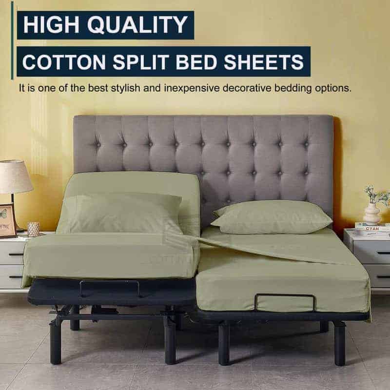 Esta colección de sábanas divididas es ideal para camas ajustables, ya que ha sido diseñada específicamente para adaptarse a colchones con una profundidad de 14 a 16 pulgadas. El juego incluye 2 sábanas ajustables divididas, una sábana plana y 2 fundas de almohada estándar, todo fabricado con puro algodón de alta calidad. El elástico en la sábana ajustable garantiza un ajuste perfecto, incluso con toppers o protectores de colchón. Además, estas sábanas tienen un precio inigualable, con una calidad comparable a modelos mucho más caros en el mercado. Para el cuidado, lavar a máquina con agua fría y detergente suave, sin lejía y secar en baja temperatura para garantizar la durabilidad y suavidad de las sábanas.