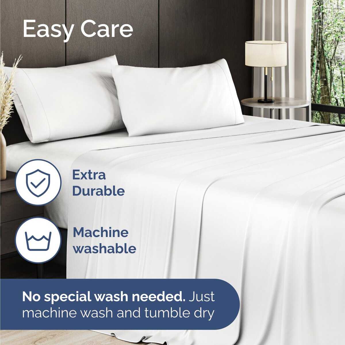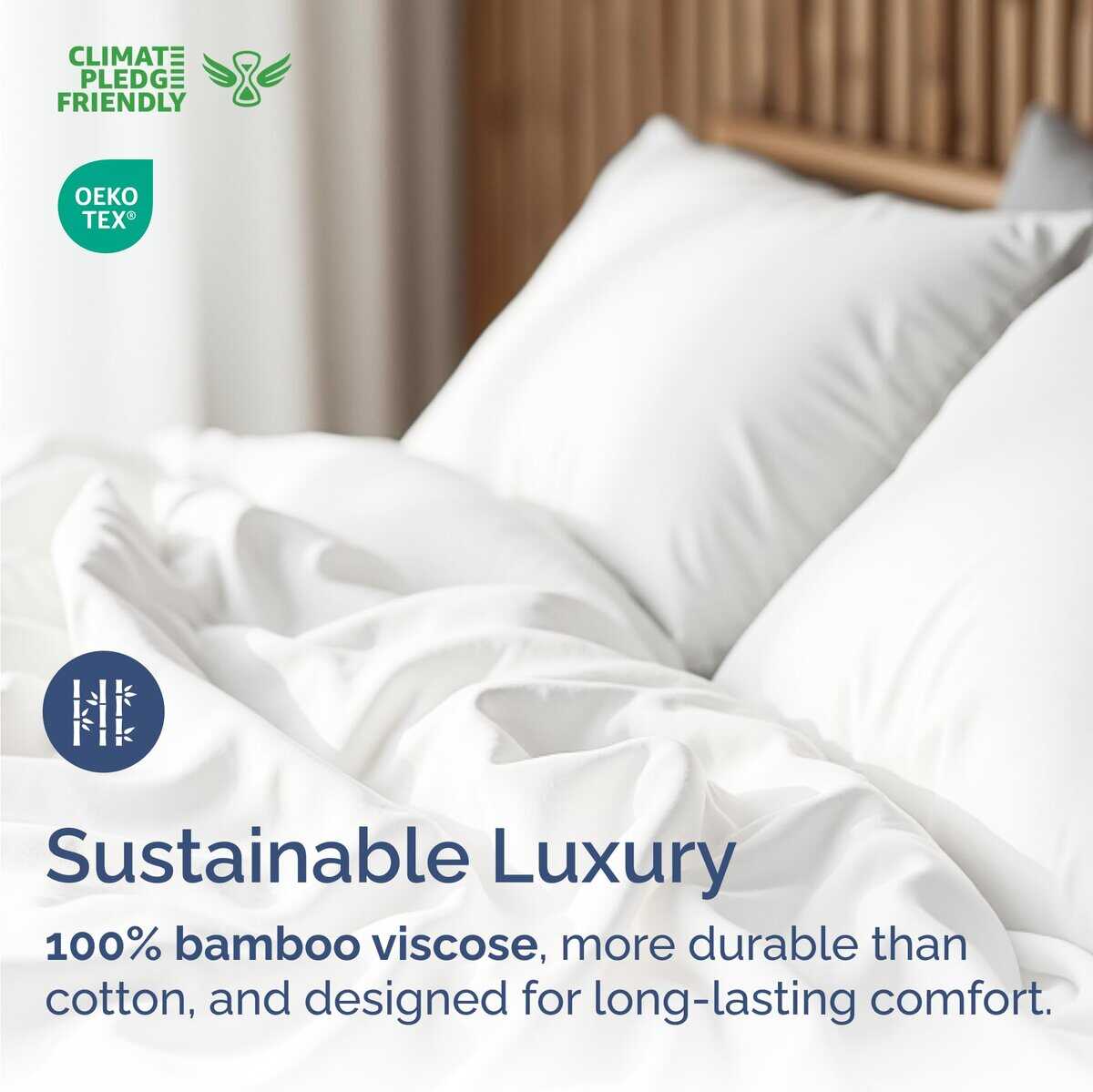 Nuestro juego de sábanas divididas de bambú tamaño split king es la elección perfecta para aquellos que buscan la combinación ideal de frescura, suavidad y durabilidad. Con un diseño cuidadosamente elaborado y tejido con 100% rayón de bambú, estas sábanas de bambú de bolsillo profundo mantendrán tu cama fresca y cómoda durante toda la noche. La transpirabilidad natural del bambú te permite mantener una temperatura óptima mientras duermes, evitando la sensación de calor y humedad. Además, la suavidad incomparable de las sábanas de bambú te brinda una sensación de lujo cada vez que te acuestas. En cuanto al ajuste, nuestras sábanas de bambú están diseñadas para adaptarse a colchones de hasta 16 pulgadas de grosor, proporcionando un ajuste perfecto y una sujeción segura que se mantiene en su lugar noche tras noche. La durabilidad de estas sábanas de bambú de lujo es excepcional, manteniéndose suaves y sedosas incluso después de múltiples lavados, lo que garantiza años de confort acogedor. Con un cuidado sin esfuerzo, puedes mantener tus sábanas de bambú siempre frescas y en perfecto estado. Lava a máquina, seca a baja temperatura y disfruta de la comodidad y frescura de las sábanas de bambú split king. ¡Duerme como nunca antes con nuestro juego de sábanas de bambú de lujo!