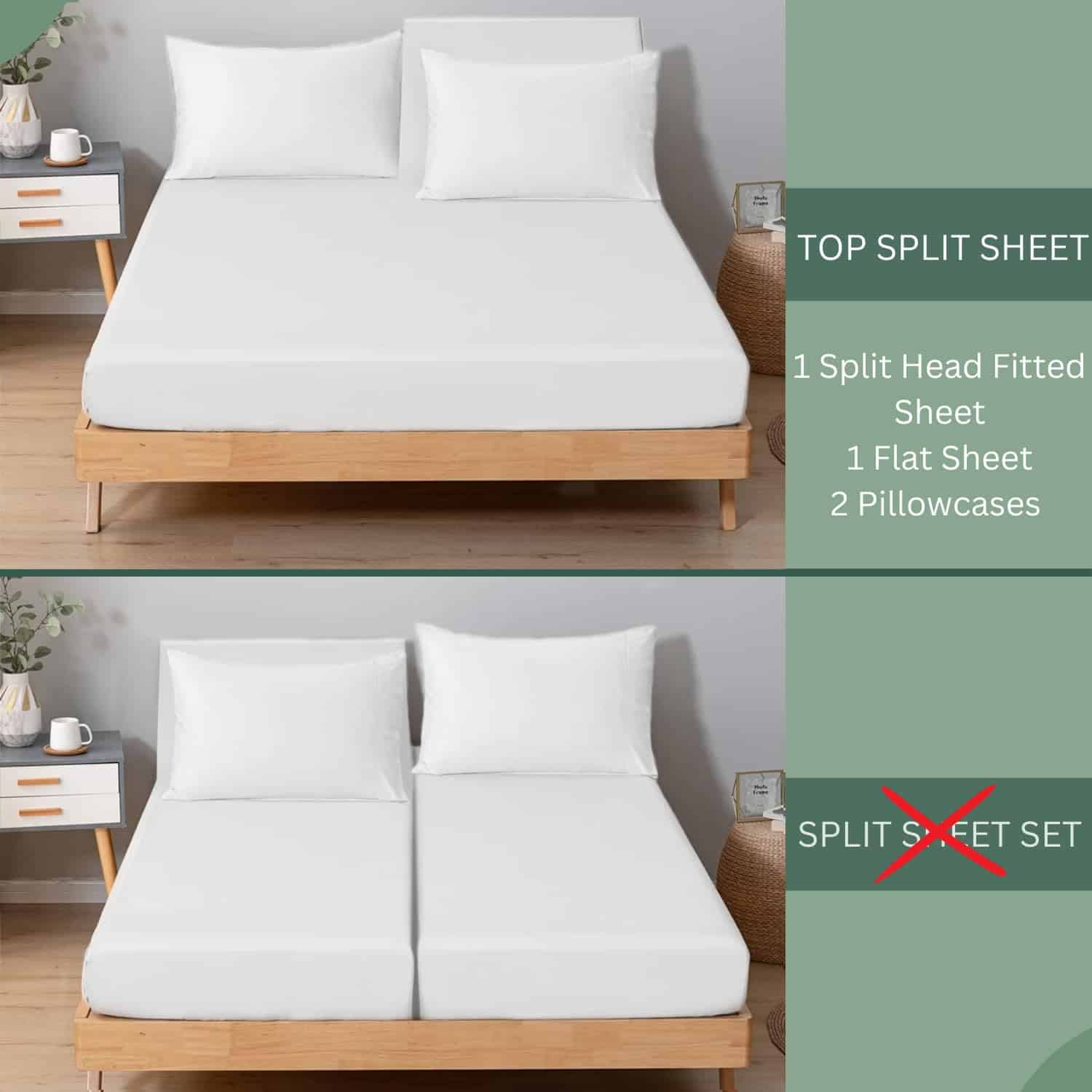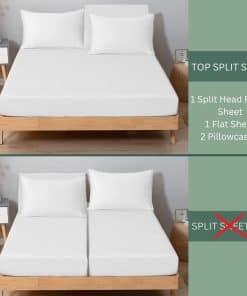 Presentamos nuestro lujoso y versátil juego de sábanas Top Split King, diseñado específicamente para su cama ajustable. Eleve su experiencia de sueño a nuevas alturas de comodidad y estilo con estas sábanas premium que satisfacen tanto la funcionalidad como la estética. Elaboradas con la mejor mezcla de tejidos ultra suaves y transpirables, nuestras sábanas garantizan un descanso nocturno tranquilo mientras se adaptan perfectamente a los movimientos de su cama ajustable. El diseño dividido en la parte superior permite un movimiento independiente de cada mitad de la cama, asegurando que usted y su pareja puedan disfrutar de un confort personalizado sin comprometer la calidad.