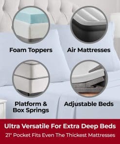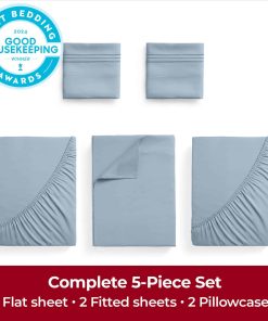 Ganador del Premio Good Housekeeping Best Bedding – Probado, testado y nombrado «Best Buy Buttery Budget» en 2024. El set de sábanas de tamaño split king de 5 piezas de Mellanni, el buque insignia de la marca, incluye 2 sábanas bajeras extra profundas separadas de 39″ x 80″ x 21″, sábana superior de 108″ x 102″ y 2 fundas de almohada de estilo sobre de 20″ x 40″, ofreciendo ropa de cama increíblemente suave a un precio asequible. Calidad y Construcción Inigualables – Bolsillos profundos en la sábana bajera ajustable que se adaptan a colchones de hasta 21″ de profundidad. Elástico cosido alrededor para una colocación y extracción fáciles, con un ajuste ceñido para permanecer en su lugar mientras duermes. Cada componente de este producto certificado por OEKO-TEX (certificado número 22.HUS.40981 probado por Hohenstein) ha sido probado contra una lista de más de 1,000 sustancias para mantener a ti y a tu familia seguros. Regulación de la Temperatura – Absorción de la humedad, transpirable y sedoso al tacto. La microfibra de doble cepillado de Mellanni es acogedora o refrescante, dependiendo de la temporada. Nuestro juego de sábanas ligero es ideal para mujeres, hombres, niños y adolescentes, para todo tipo de durmientes, incluidos aquellos con piel sensible. Tecnología de Cuidado Fácil – La tela signature Mellanni es de secado rápido y más duradera que el algodón. Resistente a manchas, encogimiento, decoloración, arrugas y bolitas. Fácil de limpiar con un paño y apto para lavar a máquina, es el juego de sábanas perfecto para hogares ocupados con niños, mascotas y más. Promesa de por Vida de Mellanni – Si no estás satisfecho con tu compra por cualquier motivo en cualquier momento, puedes devolverla, sin hacer preguntas. Nos enorgullecemos de ofrecer el mejor servicio al cliente en la industria. Compra ahora con confianza.