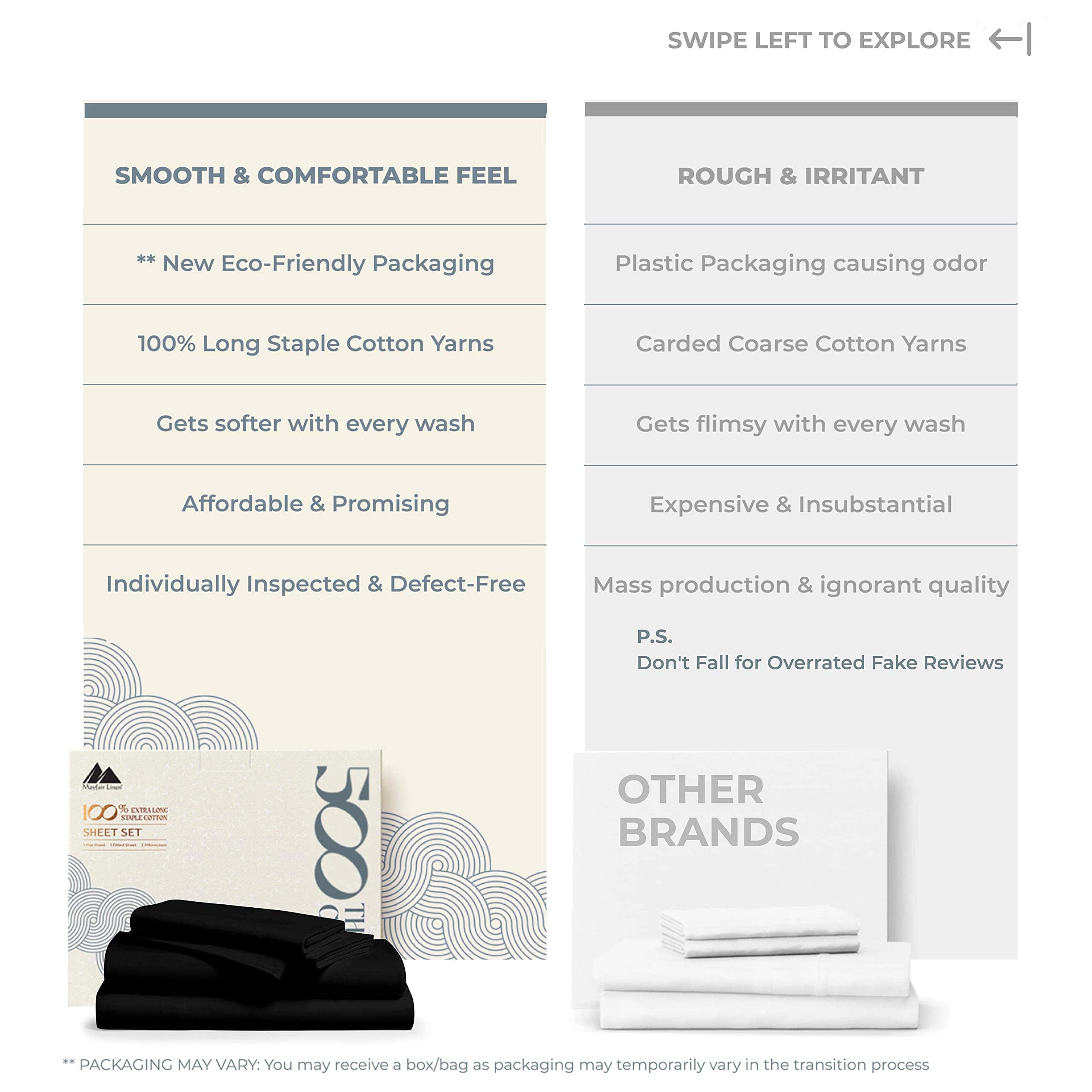 Este juego de sábanas divididas de algodón 100% de Mayfair Linen es perfecto para camas ajustables split king. Con un recuento de hilos de 500, estas sábanas son suaves y duraderas gracias a la longitud extra de la fibra de algodón. La tela mercerizada también garantiza que las sábanas mantengan su color y textura sedosa lavado tras lavado. El juego incluye 1 sábana plana o superior, 2 sábanas ajustadas o inferiores con bolsillos profundos de 16 pulgadas y 2 fundas de almohada King. Las sábanas son frescas y transpirables, perfectas para las noches cálidas de verano. Además, son respetuosas con el medio ambiente y adecuadas para pieles sensibles, ya que están hechas de algodón 100% certificado por STANDARD 100 de OEKO-TEX, lo que garantiza la ausencia de productos químicos dañinos en las sábanas. Este juego de sábanas divididas es el regalo ideal para cualquier ocasión, desde días festivos hasta celebraciones especiales. Si no estás satisfecho con la calidad de nuestras sábanas, ofrecemos la opción de cambio o reembolso dentro de los 30 días posteriores a la compra. ¡Dale a tu cama el lujo y la comodidad que se merece con este juego de sábanas divididas de algodón de Mayfair Linen!