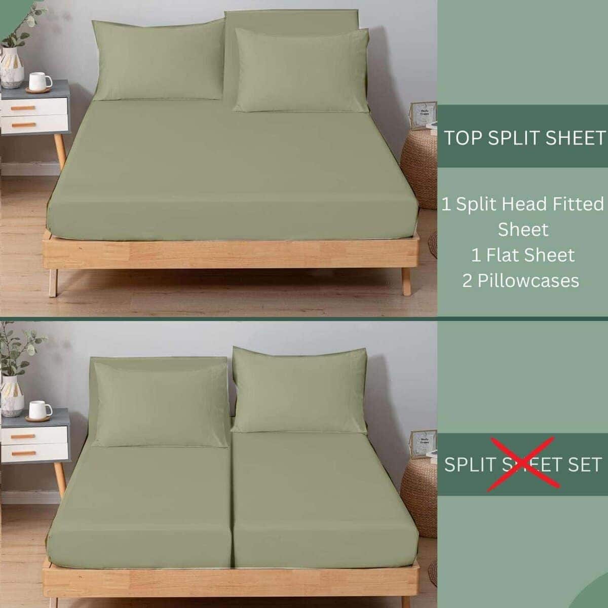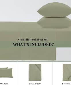 Juego de sábanas divididas para cama ajustable Split Top King: dividido hacia abajo 34 pulgadas desde la parte superior. Información del material: Juego de sábanas Top Split Head 100% algodón egipcio ofrece una combinación muy solicitada de resistencia superior, suavidad lujosa y un hermoso brillo. Este juego de sábanas está hecho de puro algodón 100%. Garantía de satisfacción del 100%: Nos comprometemos a garantizar que te encanten tus nuevos juegos de sábanas y tengas una experiencia excepcional. Juego de sábanas que transforma un dormitorio en un oasis, queremos que ames cada noche en nuestra ropa de cama de alta calidad. Dale el regalo definitivo o date un capricho. ORDENA AHORA, sin riesgos. Si no estás completamente satisfecho, avísanos y lo solucionaremos. Instrucciones de cuidado: Lavable a máquina con agua fría, ciclo delicado con detergente suave. No usar lejía, secar este juego de sábanas con ajuste bajo.