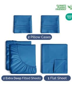 1. JUEGO DE SÁBANAS DIVIDIDAS PARA CAMA KING EXTRA PROFUNDA: Estas sábanas son para colchones muy profundos. Se ajustan a cualquier colchón con bolsillos de 18, 20, 21, 22 y 24 pulgadas de profundidad. Hay un elástico elástico alrededor de la sábana ajustable extra profunda que se estira para un ajuste agradable alrededor de su colchón. Perfecto para colchones extra altos y grandes. ¡Estas sábanas extragrandes se mantendrán apretadas y en su lugar! 2. JUEGO DE SÁBANAS DE 5 PIEZAS: Este juego de sábanas viene con 2 fundas de almohada en total, todas con un hermoso diseño de bordado decorativo en cada funda de almohada. Las fundas de almohada tienen diseños de cierre. Este juego de ropa de cama se adaptará perfectamente a su colchón extra grueso. 3. IDEAL PARA COLCHONES CON DOBLE TOPE DE ALMOHADA: Estas sábanas son perfectas para colchones con un tope de 3 o 4 pulgadas en la parte superior, toppers de memoria, grandes almohadillas para colchones, toppers de almohadas, toppers de espuma, grandes toppers de espuma, colchones con topper y colchones de espuma con memoria. ¡Estas sábanas no se desprenderán y permanecerán en su lugar! 4. MICROFIBRA: Este es el tipo más suave de sábanas de microfibra que hemos creado. Súper suaves con una sensación ligera. No crujientes como el algodón. Si está acostumbrado a las sábanas de algodón y nunca ha probado las sábanas de microfibra, le recomendamos que al menos las pruebe. ¡Son incluso más suaves que el algodón! 5. DIMENSIONES Y TAMAÑOS: Sábana bajera de 113 pulgadas de ancho y 102 pulgadas de largo. Sábana ajustable de 39 pulgadas de ancho y 80 pulgadas de largo con bolsillos de 21 pulgadas (tiene elástico para que pueda estirarse). Las dos fundas de almohada son extragrandes de 20 x 40 pulgadas.