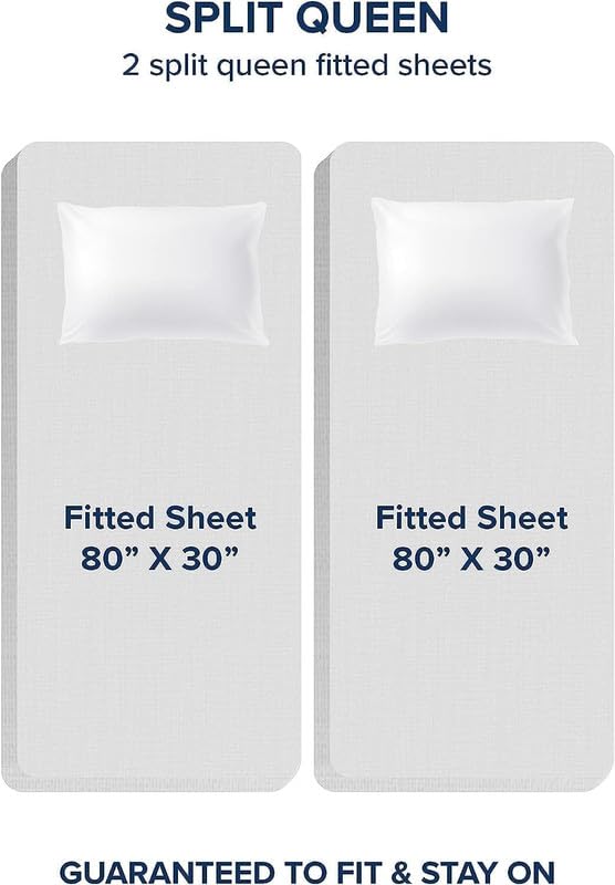 El juego de sábanas divididas para cama Queen está diseñado específicamente para camas ajustables. El juego incluye 2 sábanas ajustables que miden 30×80 pulgadas cada una. Estas sábanas ajustadas tienen bolsillos profundos que se ajustan a colchones de hasta 15 pulgadas de profundidad, asegurando un ajuste seguro en cada lado de la cama. Este conjunto de ropa de cama viene con dos sábanas ajustables (30 «x 80 «), una sábana plana (90 «x 102 «) y dos fundas de almohada estándar (20 por 30 pulgadas). El juego de sábanas está hecho de 100% algodón egipcio, conocido por su calidad superior y su suavidad. La tela es increíblemente cómoda, ideal para una buena noche de sueño. Las sábanas en este juego tienen un recuento de hilos de 400, que se considera de alta calidad y lujoso. Este alto recuento de hilos resulta en una sensación más suave y suave, así como una mayor durabilidad. El juego de sábanas divididas está disponible en una gama de colores elegantes para adaptarse a cualquier decoración del dormitorio. El diseño simple pero elegante es perfecto para crear un espacio acogedor e invitador para dormir y relajarse. Nuestro juego de sábanas es fácil de cuidar, se puede lavar a máquina y secar en secadora a fuego lento. La tela es resistente a las arrugas y al encogimiento, asegurando que sus sábanas se vean y se sientan geniales después de cada lavado. Estamos seguros de que le encantará nuestro juego de sábanas divididas para cama Queen, y ofrecemos una garantía de satisfacción del 100%. Si por alguna razón no está completamente satisfecho con su compra, estaremos encantados de proporcionarle un reemplazo.