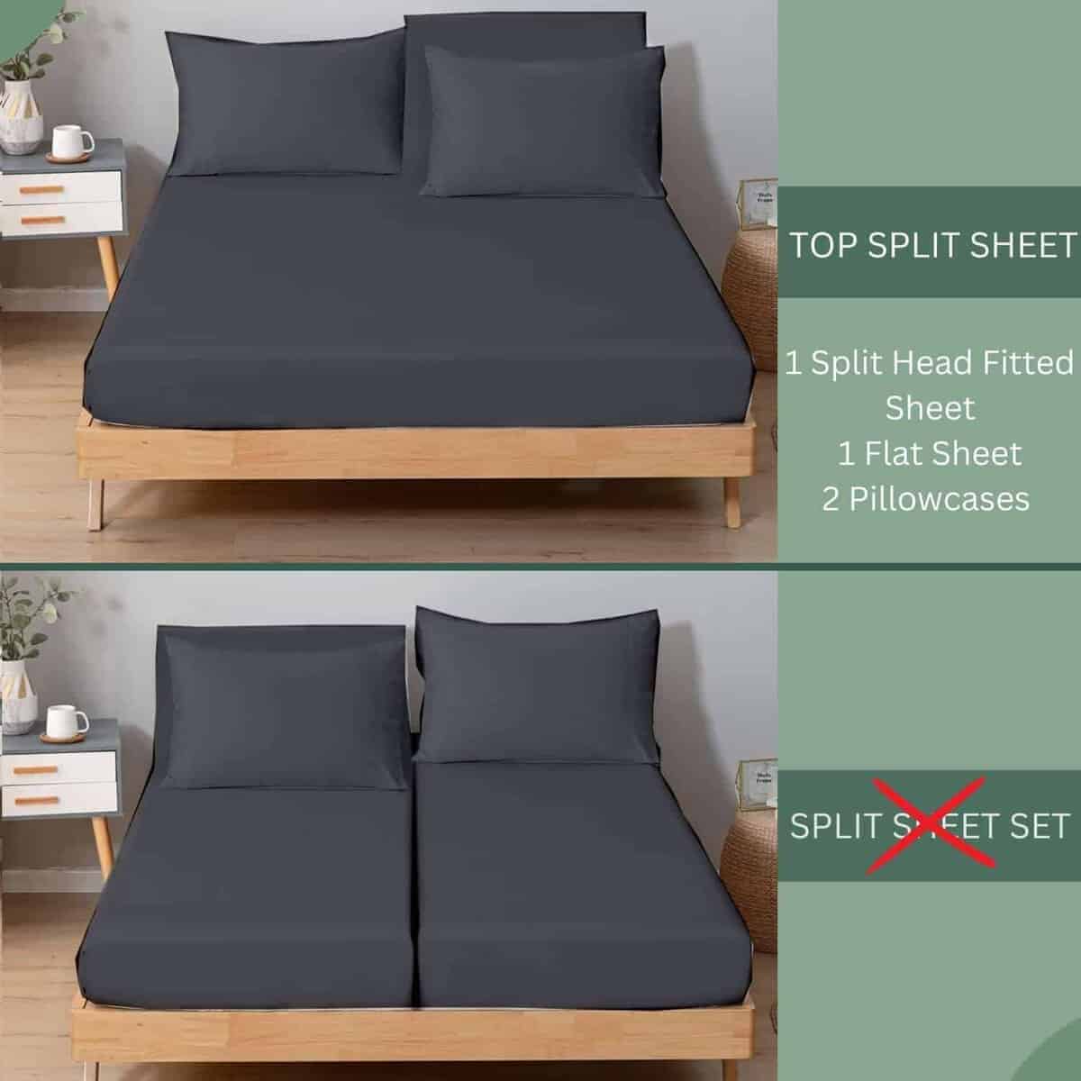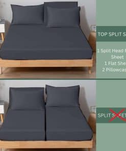Conjunto de sábanas de cabezal dividido Top Split King 100% algodón egipcio ofrece una codiciada combinación de resistencia superior, suavidad lujosa y hermoso brillo. Este juego de sábanas está hecho de puro algodón 100%. Estamos comprometidos a garantizar que ames tus nuevas sábanas y tengas una experiencia excepcional. Un juego de sábanas que transforma un dormitorio en un oasis, queremos que ames cada noche en nuestra ropa de cama de alta calidad. Da el regalo definitivo o date un capricho. ORDENA AHORA, sin riesgos. Si no estás completamente satisfecho, avísanos y lo solucionaremos. Instrucciones de cuidado: Lavable a máquina con agua fría, ciclo delicado con detergente suave. No usar lejía, secar este juego de sábanas con temperatura baja.