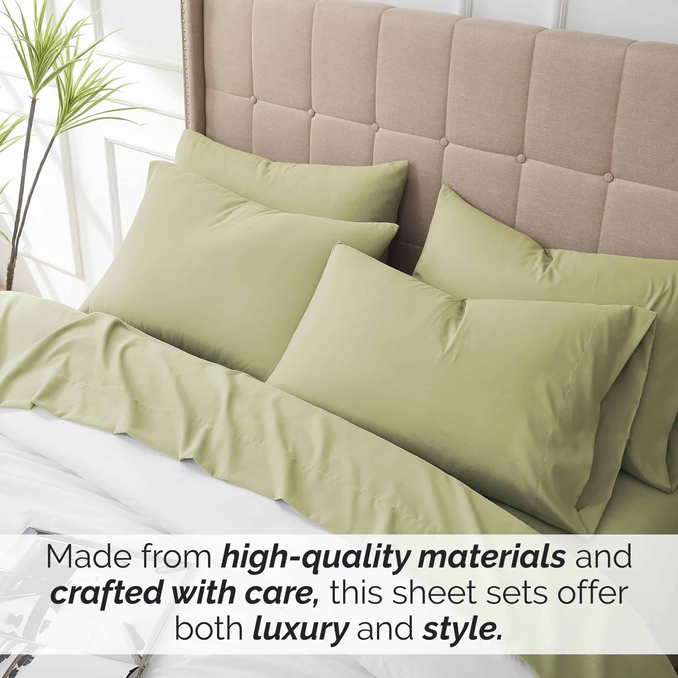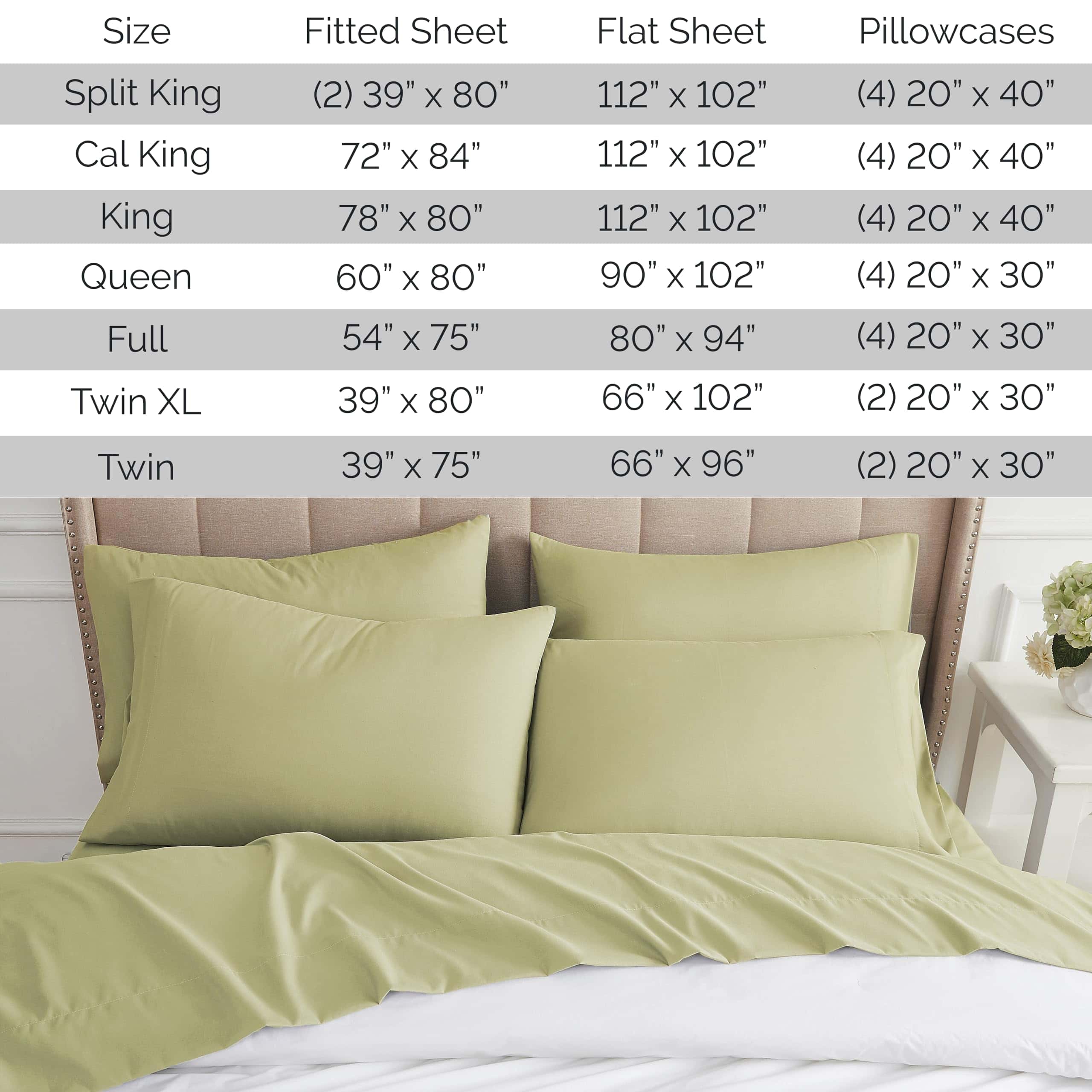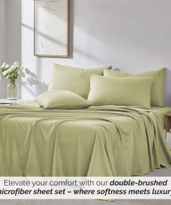 16-Inch Deep Pocket for a snug fit: These sage green bed sheets stay secure and don’t slip off easily! Our 16″ extra deep pocket sheet set includes two deep pocket fitted sheets each with a strong elastic around the entire hem to cover a split king bed.