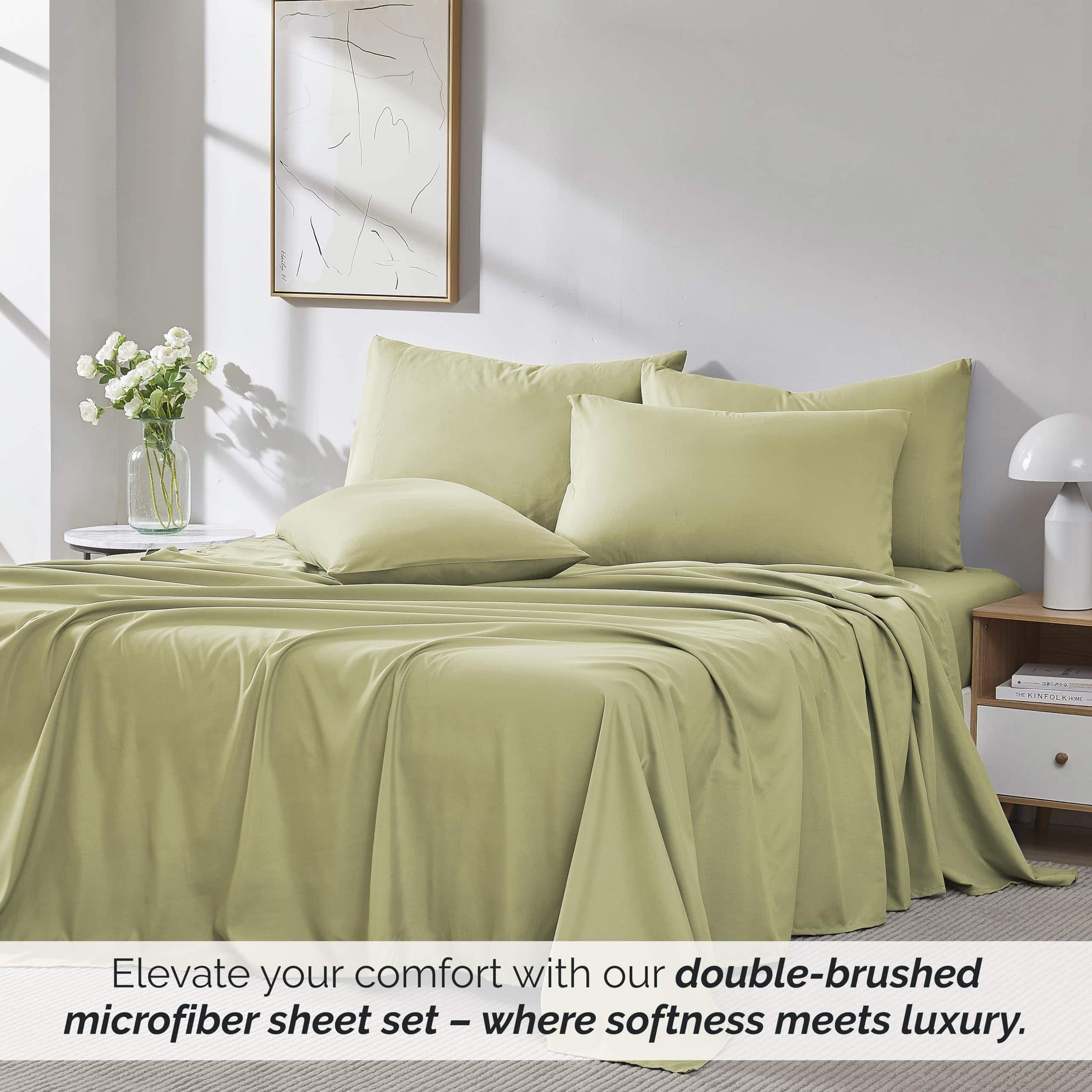 Luxury Sheets with ultra breathable Fabric: Enjoy lightweight sage green sheets that last! Our buttery soft, double brushed split king sheet set made of 100 GSM premium bedding quality are also shrink-free, making them the best sheets for adjustable beds!.