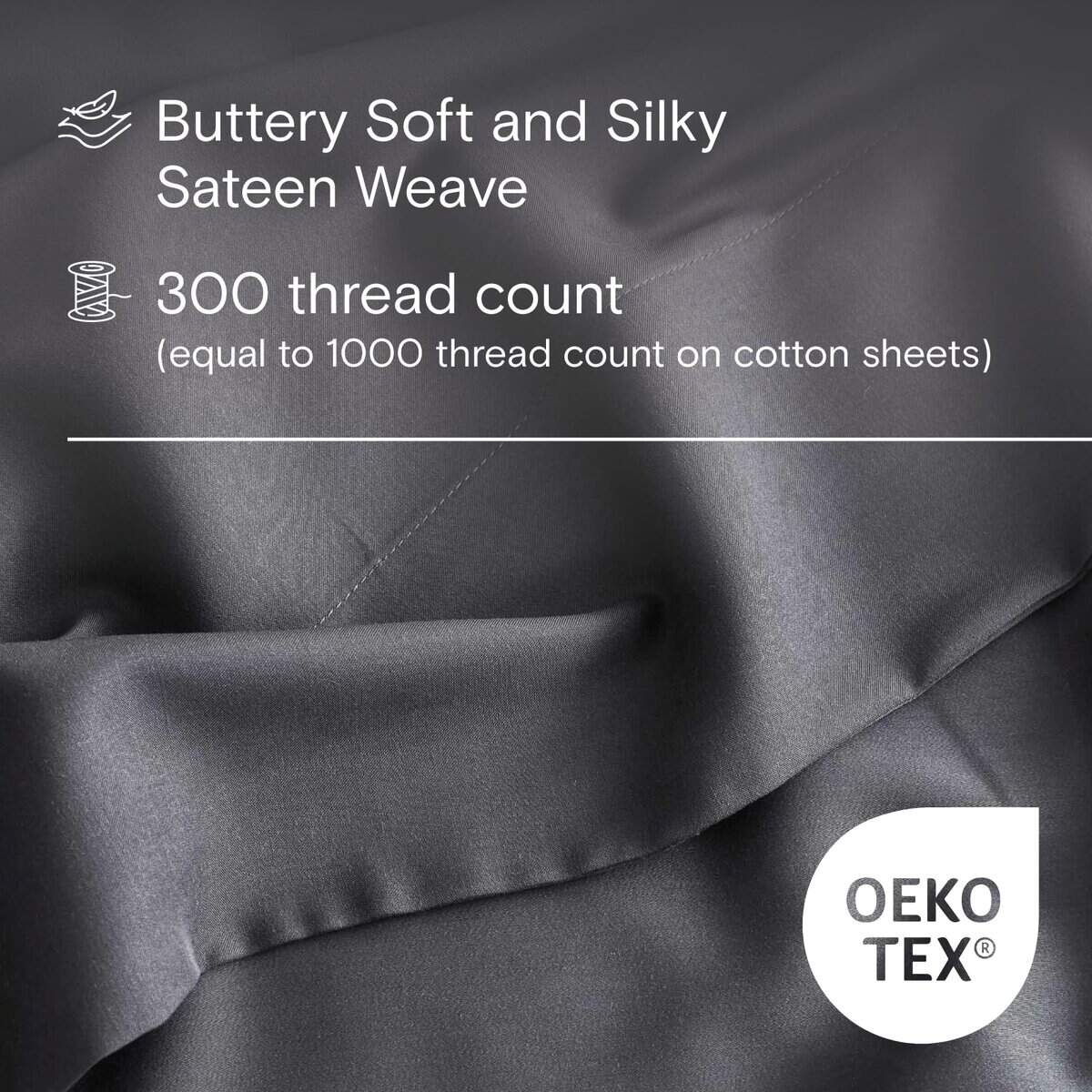 3. SUAVES COMO LA MANTEQUILLA: Las sábanas de viscosa Doz tienen un tejido satinado que les da a las sábanas y fundas de almohada una sensación excepcionalmente suave y cómoda, y la ropa de cama se ajustará cerca de tu piel. Las personas con piel sensible apreciarán la suavidad de las sábanas, ya que el tejido produce menos fricción contra la piel durante el sueño. Un recuento de 300 hilos hace que las sábanas sean más suaves y sedosas que las sábanas de algodón con un recuento de 1000 hilos.