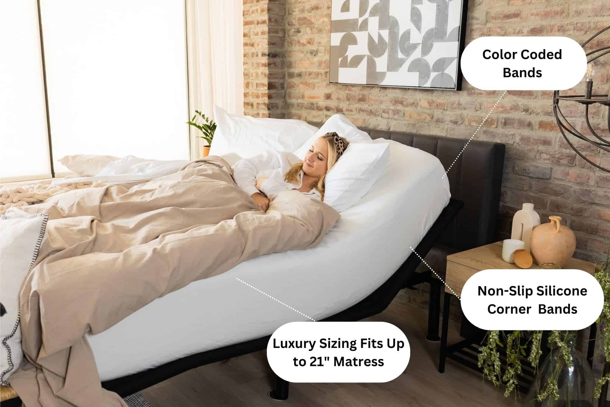 Duerma saludablemente con las cualidades de manejo de la humedad de viscosa de bambú utilizadas en este juego de sábanas. Experimente la suavidad como nunca antes. El rendimiento de enfriamiento del bambú se mejora con la resistencia del lujoso algodón de fibra extra larga de alta calidad. Todas las líneas de sábanas DreamFit están hechas con las siguientes Características de Calidad: Patente de DreamFit Garantizado para Ajustar y Garantizado para Permanecer en su Lugar. La construcción se ajusta a cualquier tamaño de colchón. Bandas de esquina patentadas DreamFlex para un ajuste seguro. Banda elástica DreamFlex 360 para un ajuste personalizado.