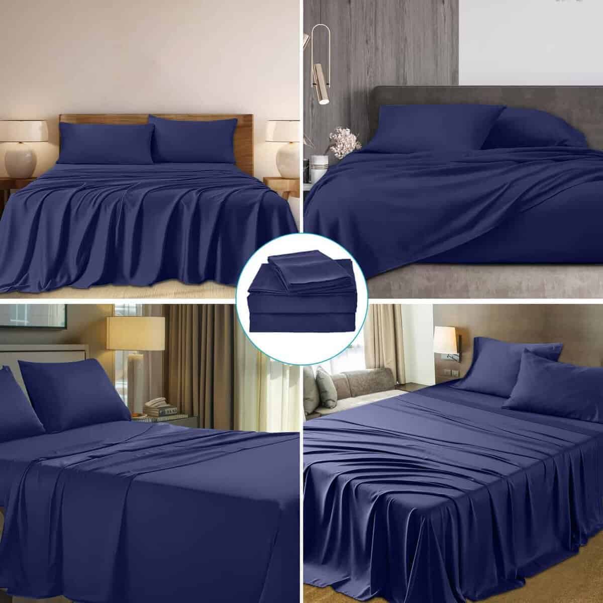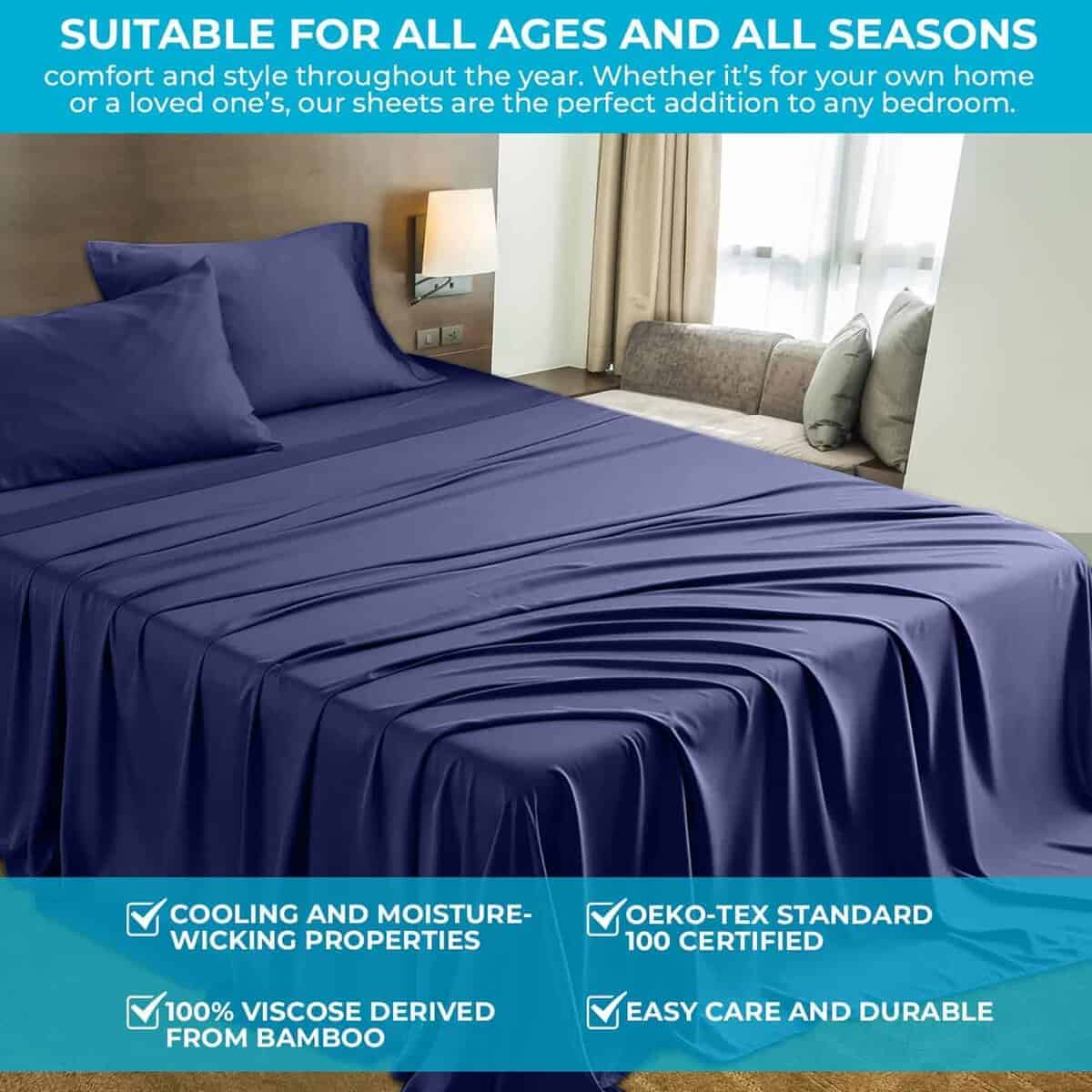 La sábana DrSleeep está hecha de 100% viscosa derivada del bambú, lo que proporciona una sensación suave y fresca para una noche de sueño confortable. Certificada con el estándar OEKO-TEX STANDARD 100, garantizando que esté libre de productos químicos nocivos, haciendo de estas sábanas una excelente opción para pieles sensibles y un ambiente de sueño seguro y saludable. El juego de 4 piezas incluye una sábana ajustable con bordes elásticos que se adapta a colchones de hasta 16 pulgadas, una sábana plana y dos fundas de almohada con cierre de tipo sobre. Fáciles de cuidar, se pueden lavar a máquina y secar a baja temperatura. Las sábanas DrSleeep resisten el pillado y se mantienen suaves y duraderas lavado tras lavado, siendo una elección práctica y lujosa para tu dormitorio.