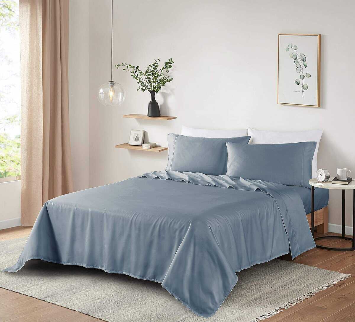 Juego de Sábanas ELINEN 100% Algodón -Azul Gris