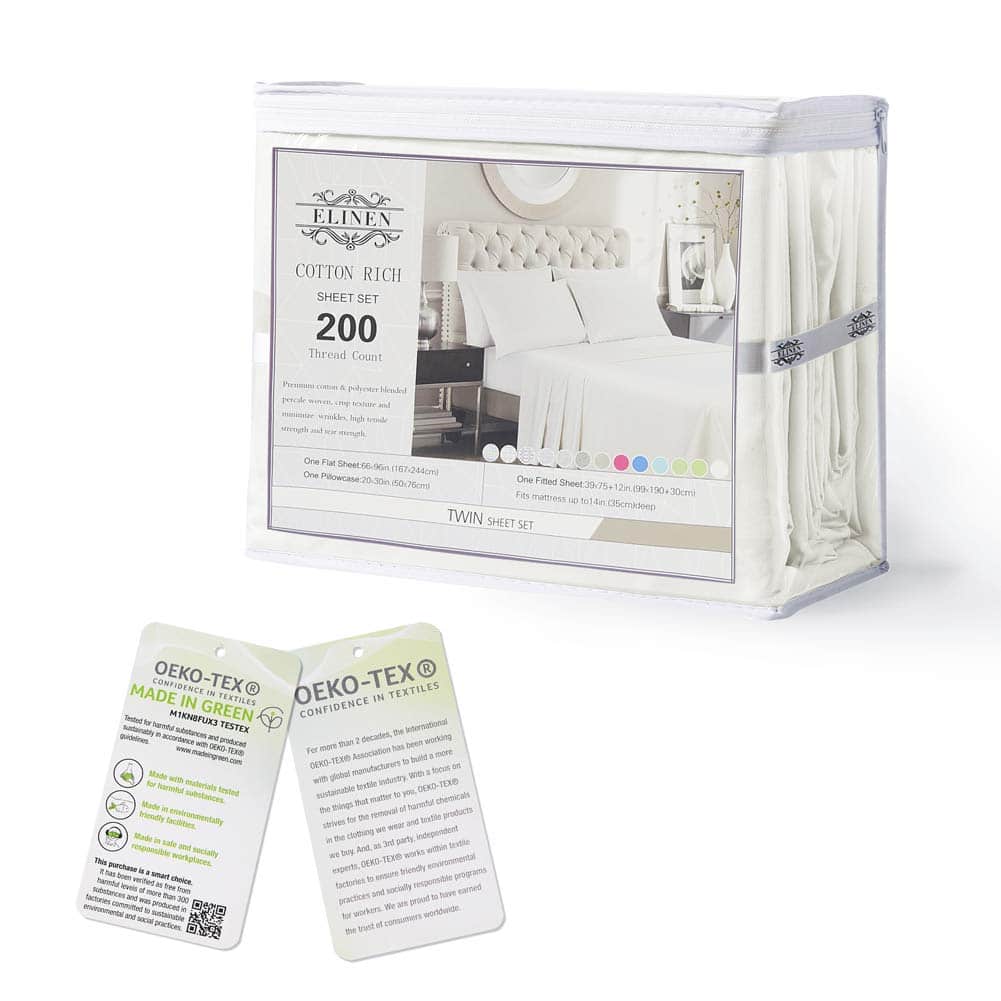 Juego de sábanas ELINEN Twin Size Percale, 200 Hilos,