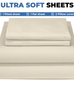 El juego incluye una sábana plana, una sábana ajustable y dos fundas de almohada, todas diseñadas en una paleta de colores neutros versátiles para complementar cualquier decoración de dormitorio.