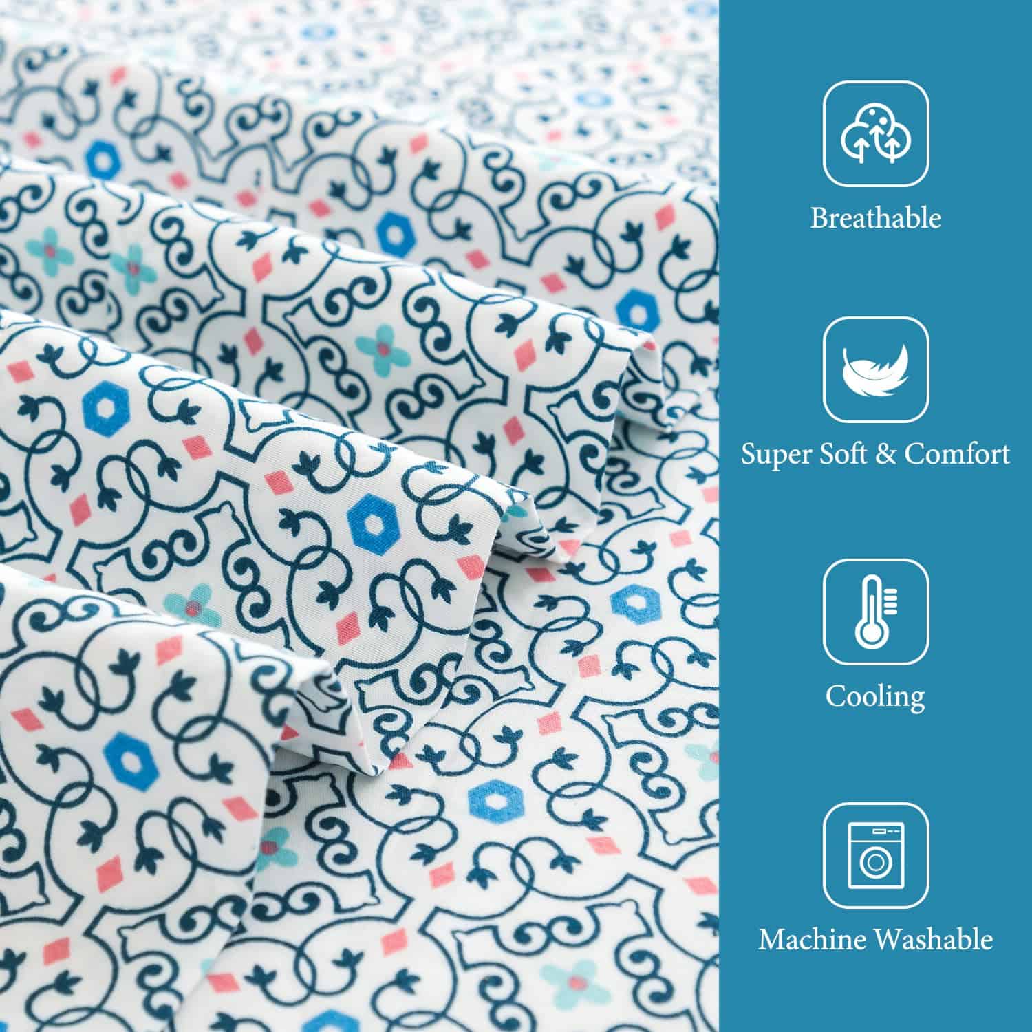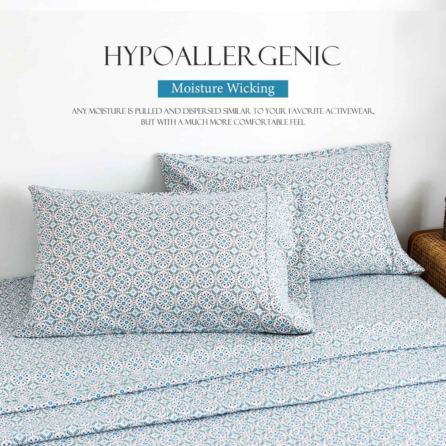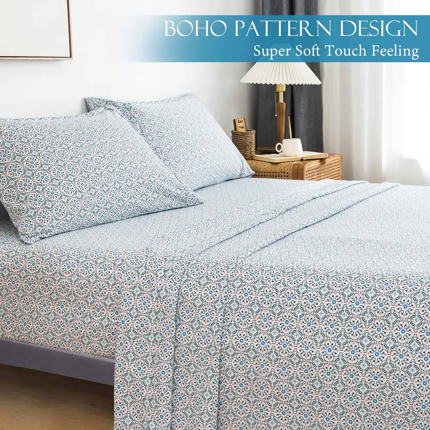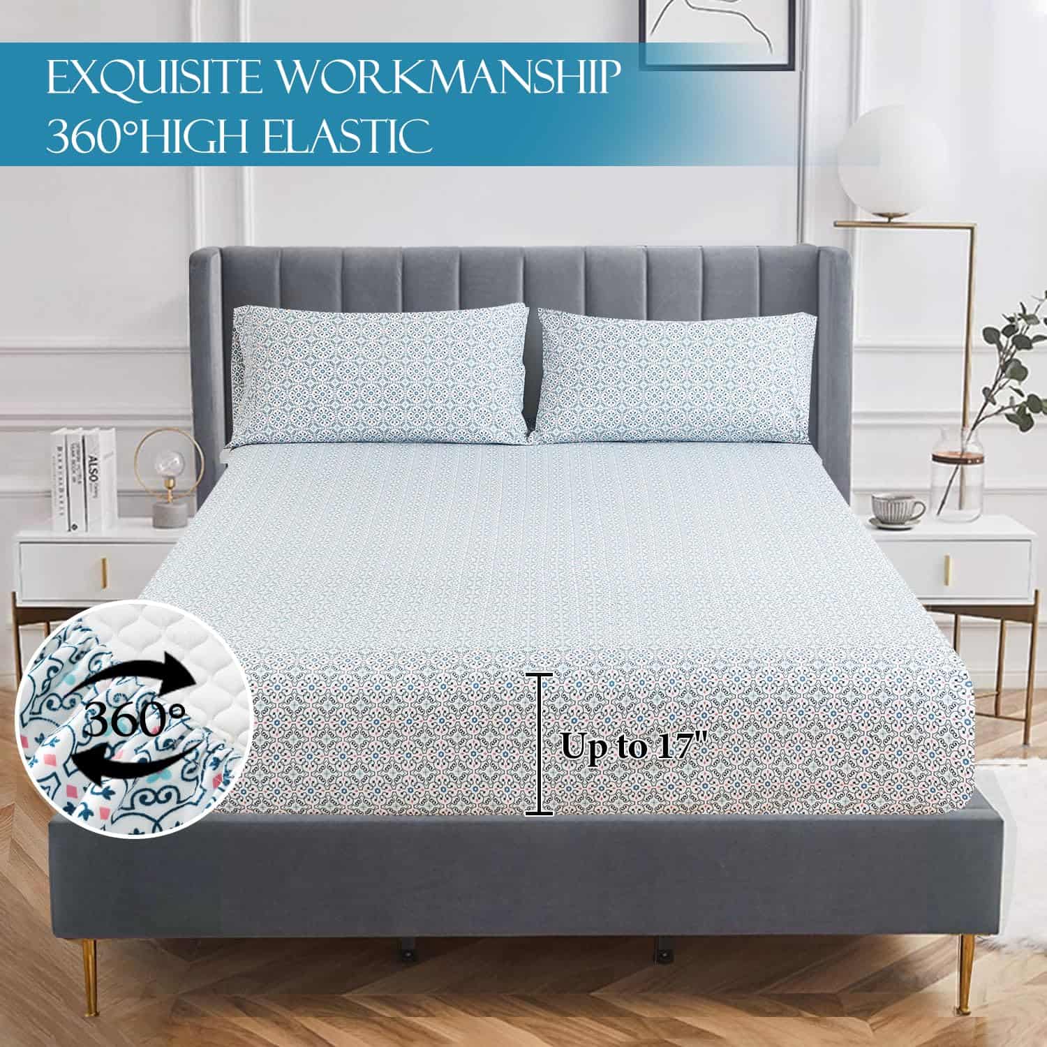Juego de Sábanas Estampadas Azules KACEMOO Queen Juego de