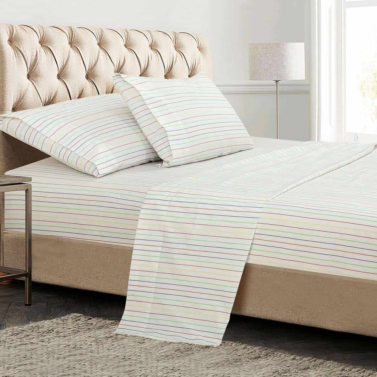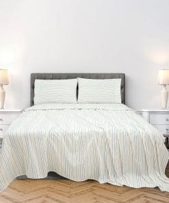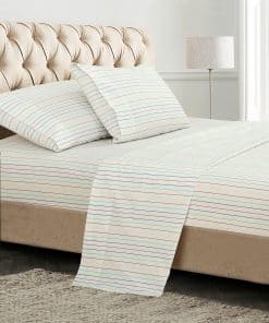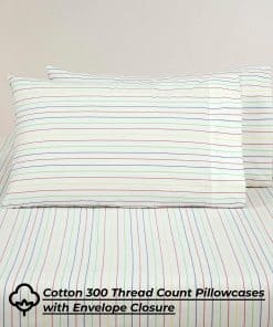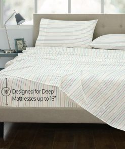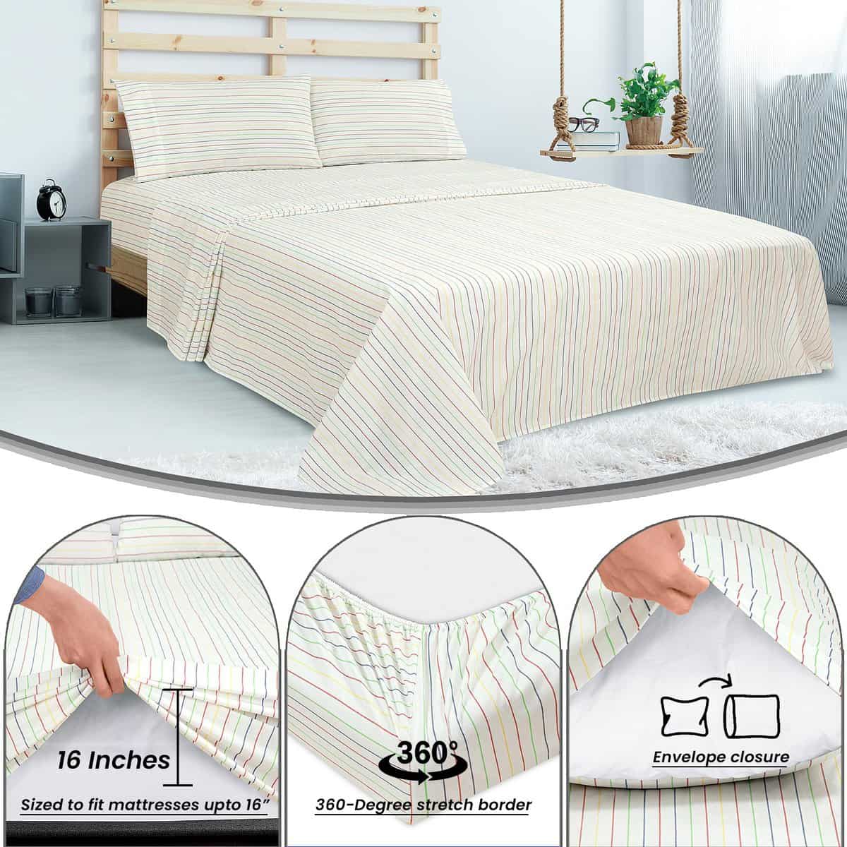 2. JUEGO DE SÁBANAS DE 4 PIEZAS DE 300 HILOS: Este juego de sábanas Queen de 300 hilos 100% algodón incluye: 1 sábana plana de 90×102 pulgadas, 1 sábana ajustable de 60×80 pulgadas con caída de 16 pulgadas y 2 fundas de almohada de 20×30 pulgadas con dobladillo de 4 pulgadas y cierre de sobre.