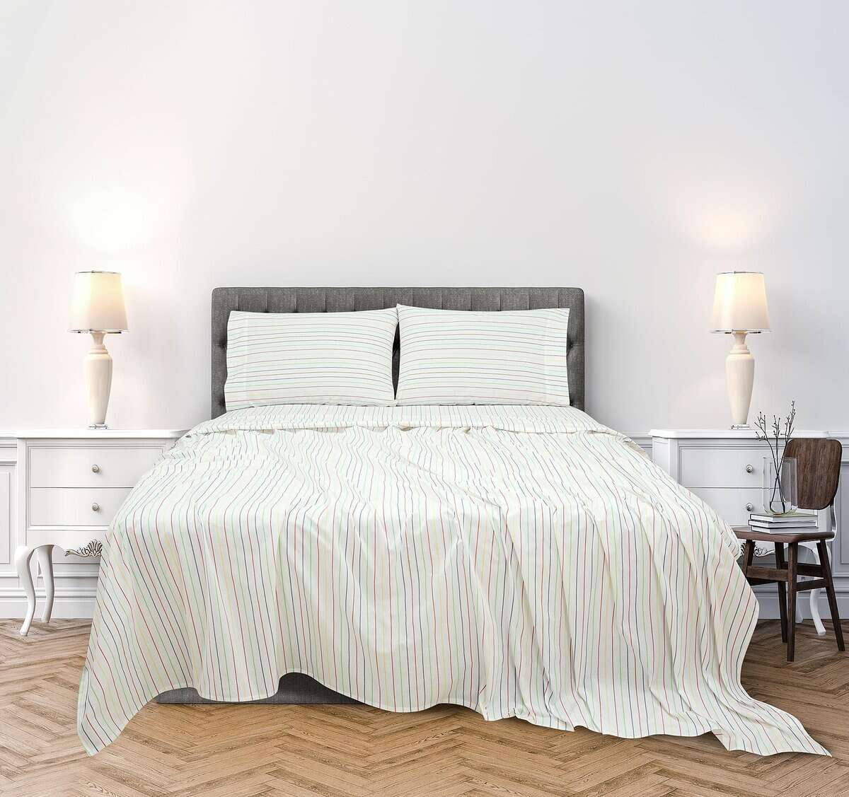 Juego de sábanas estampadas de algodón peinado de 300 hilos