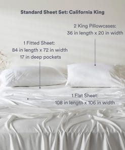 3. DISEÑO SEGURO: La sábana ajustable cuenta con bolsillos extra profundos para adaptarse a colchones de hasta 16-17 pulgadas de grosor. Una banda elástica alrededor del borde garantiza un ajuste ajustado y seguro que se mantiene en su lugar, mientras que las fundas de almohada con cierre tipo sobre mantienen tus almohadas ordenadas.