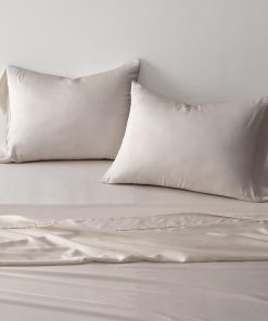 2. FRESCURA TODO EL AÑO – Creado para una frescura definitiva, nuestras sábanas refrescantes están hábilmente tejidas para apoyar la regulación térmica natural de tu cuerpo, asegurando una sensación constantemente fresca y refrescante durante toda la noche. Con su transpirabilidad inherente y habilidades de absorción de humedad, este tejido natural crea una experiencia de sueño refrescante, perfecta para los que duermen caliente o las noches cálidas. Disfruta del equilibrio perfecto entre transpirabilidad y suavidad para una comodidad durante todo el año.