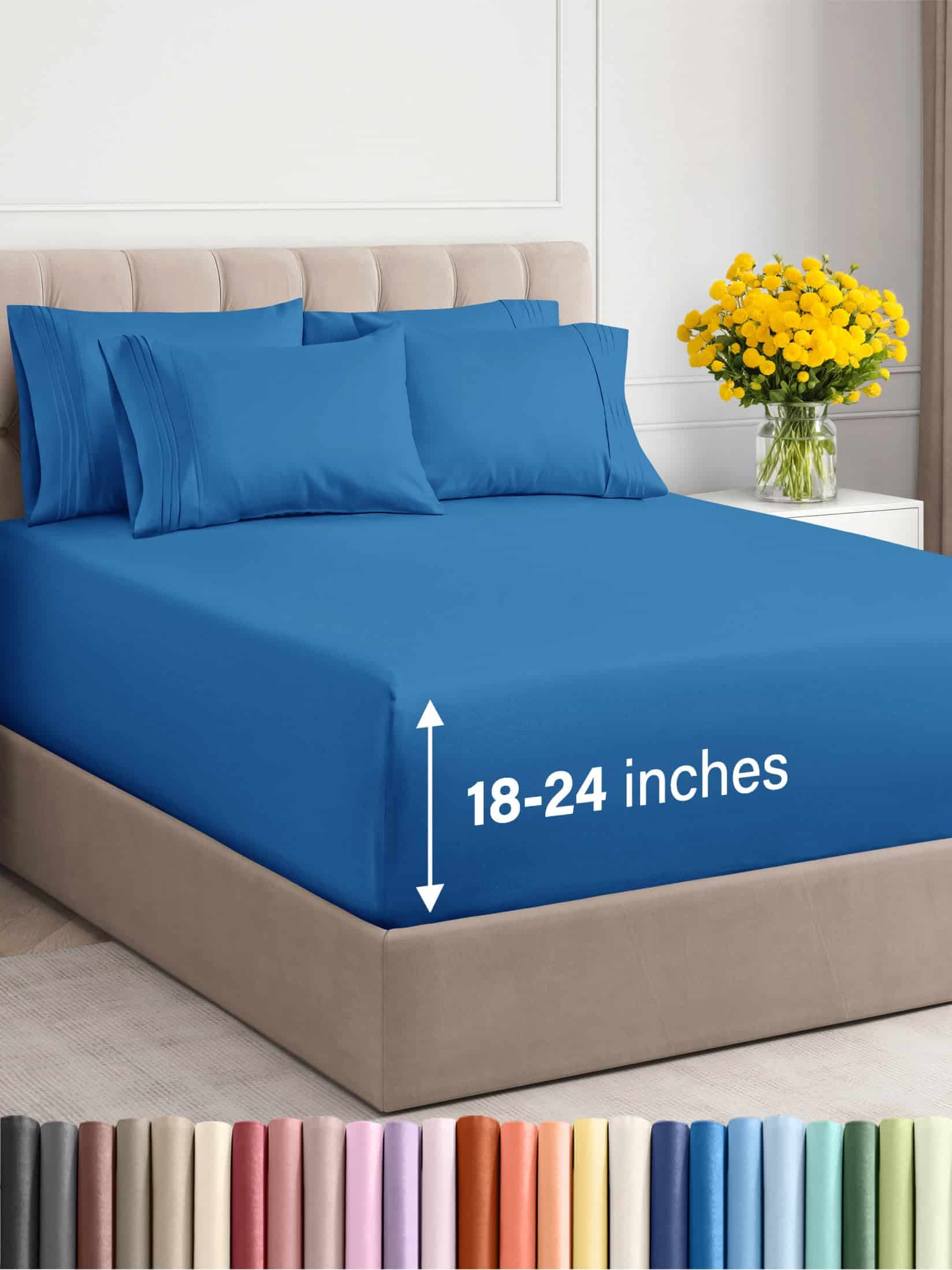 Juego de sábanas Extra Deep Cal King – 6 Piezas -Azul Real